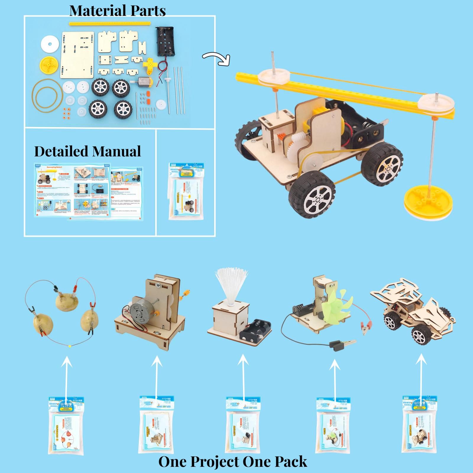 - Project A – Hand Crank Generator Model : Children can easily DIY a hand-cranked generator model step by step with the help of detailed assembly instructions. Through this science experiment, they can learn how to convert kinetic energy into electrical energy and start the journey of STEM courses. Great for Classroom Demonstrations.