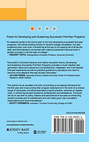 Developing and Sustaining Successful First -Year Programs First-year programs and interventions have become critical launching pads for student success and retention in higher education. However, these programs often flounder not because of what they are trying to do, but because of the ways in which they are implemented. Developing and Sustaining Successful First-Year Programs offers faculty, academic administrators, and student affairs professionals a comprehensive and practical resource that includes step-by-step guidance for developing new first-year programs and enhancing existing programs. The book explores the key elements that contribute to sustained student success and the programs that have the capacity to continue to meet student needs while making the most of scarce resources. The authors show how to create and sustain critical partnerships, put in place the needed organizational structures, and include strategies for developing effective assessments and evaluations. Developing and Sustaining Successful First-Year Programs is filled with illustrative examples and profiles of successful programs from a range of institutions that vary in size, type, selectivity, and culture. Examples of common programs and interventions include summer bridge programs, student orientation, first-year seminars, learning communities, residential programs, developmental education, and many more. Based in scholarly literature, theory, and practice, the book highlights the initiatives that facilitate the transition, learning, development, and success of new college students.