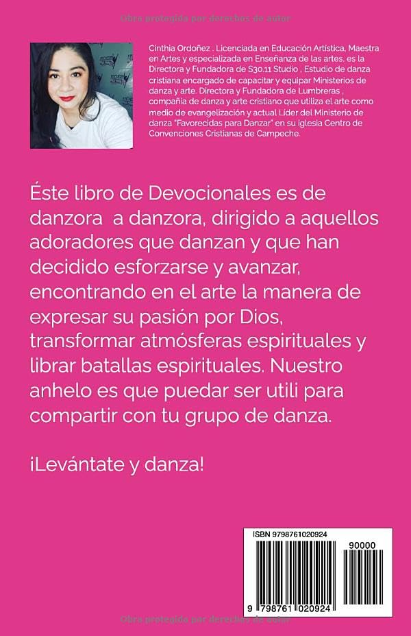 Te presentamos nuestro primer libro de devocionales escrito por una danzante, para danzantes. ?Te has sentido con ganas de colgar el pandero? ?Has enterrado tu talento y no te has dado cuenta? ?Te has sentido afanada y ansiosa en tu ministerio? Cada uno de estos devocionales han sido escritos para ti danzante que dia a dia te sigues esforzando y danzando con toda tu pasion, que muchas veces has tenido conflictos internos preguntandote si es tiempo de dejar lo que tanto amas o tal vez motivada y llena de inquietud por seguir aprendiendo, estudiando e inspirandote.