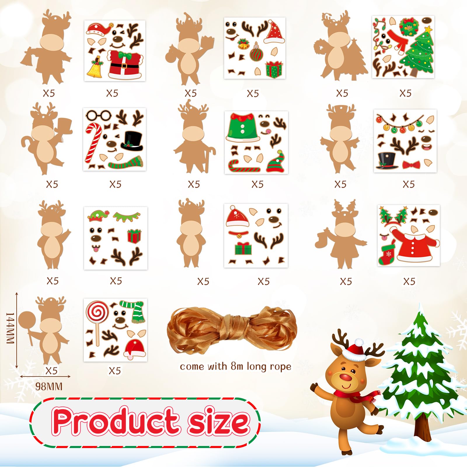 - Sufficient Quantity: the package contains 50 Christmas reindeer craft kit for kids, including 50 pieces of reindeer cardboard, 50 reindeer crafts stickers and an 8 meters long rope for easy hanging and decoration, sufficient quantity and rich styles, enough choices and replacements to meet your daily DIY needs; You can also share with your children