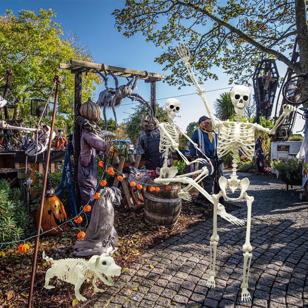 Package Include: Package includes a 5.4ft full size skeleton and a dog skeleton. Great addition for Halloween decoration.