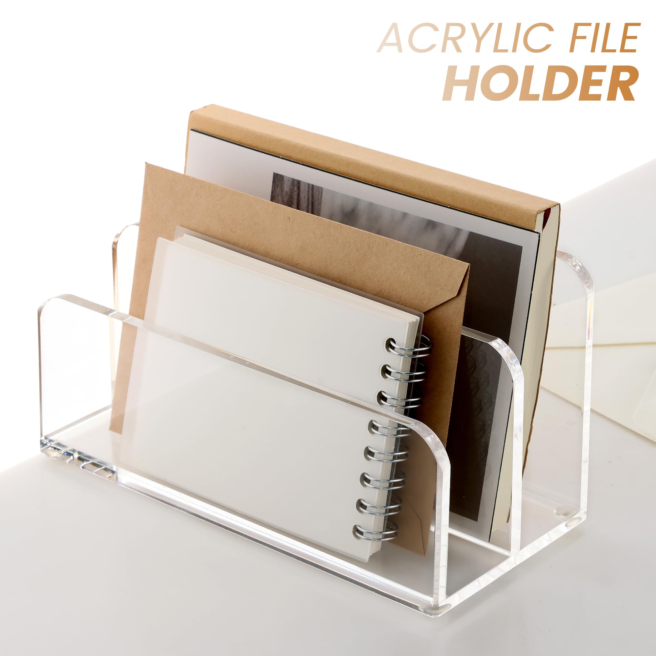 Acrylic File Holder: This two-section desk file organizer has a 1.2-inch clearance, providing plenty of room for organizing files, books, mail, and more, making it the perfect mail folder and vertical acrylic desk organizer for workspace