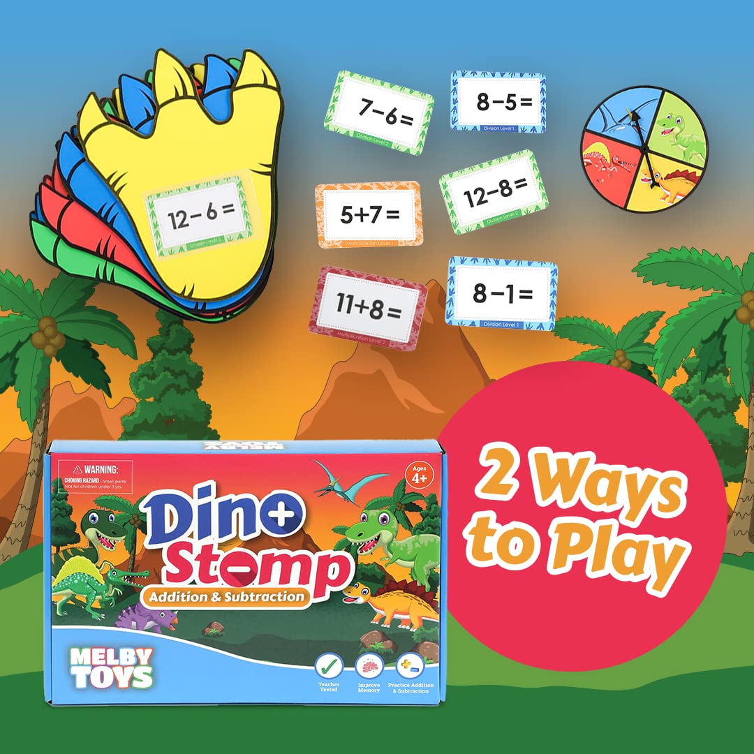 - TIME FOR DINO RACES- Skip boring math flashcards. Simply slide the addition flashcards into the foam dino feet, and let your child stomp from foot to foot. Dino Stomp is a multisensory kindergarten math game designed for individual or group play!