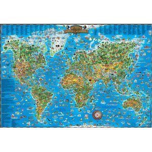 These illustrated maps of the solar system and the world serve as educational visual aids for learning geography and astronomy.