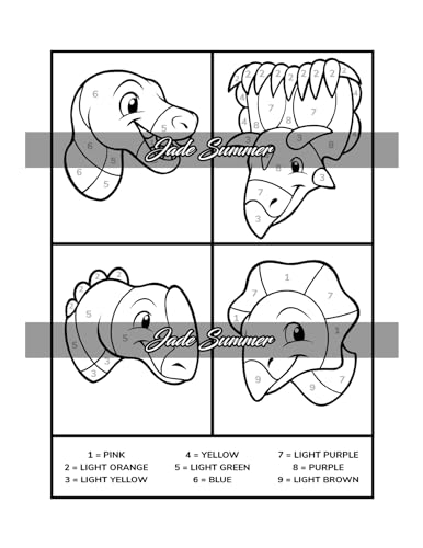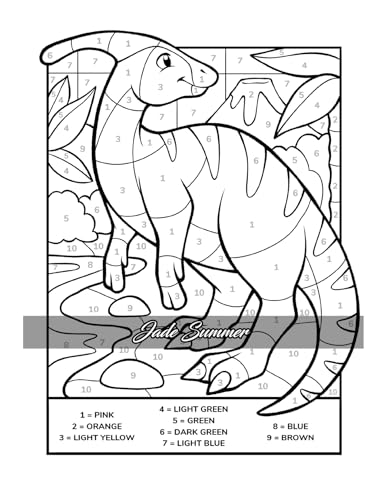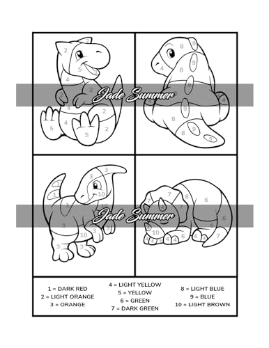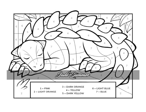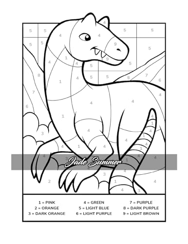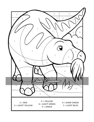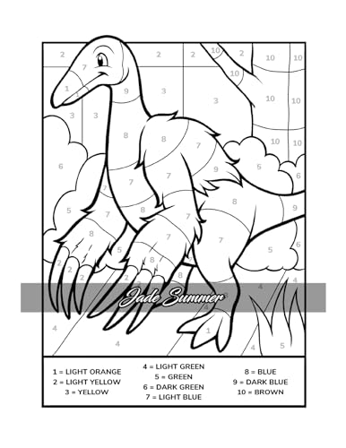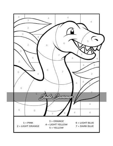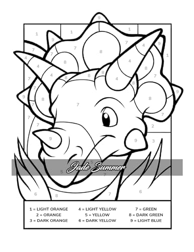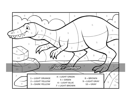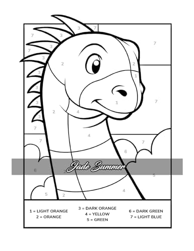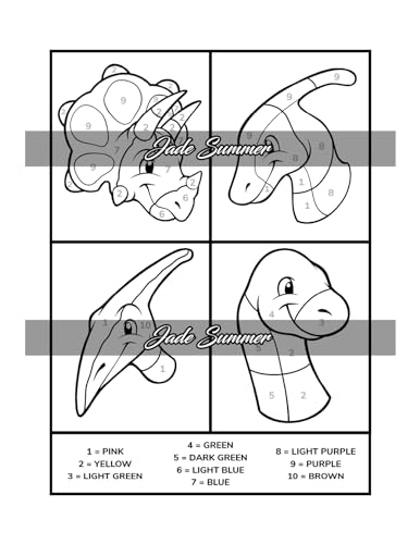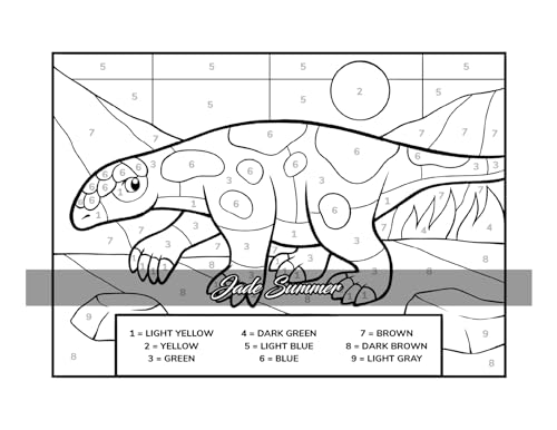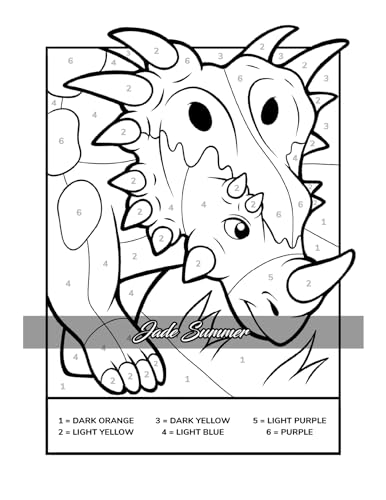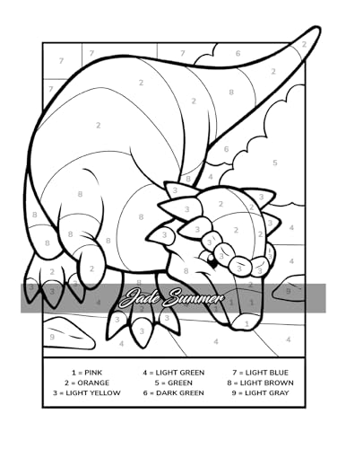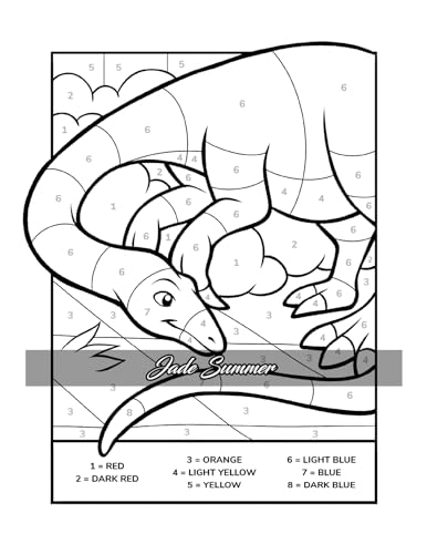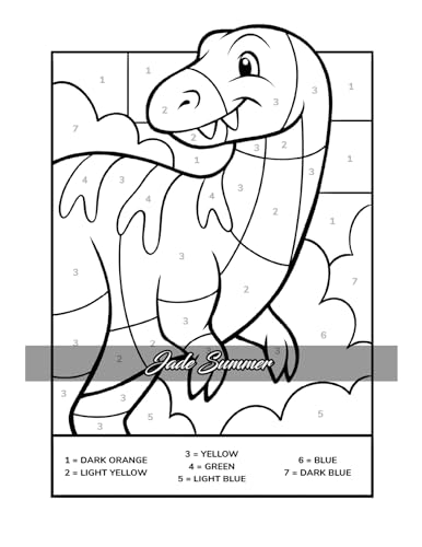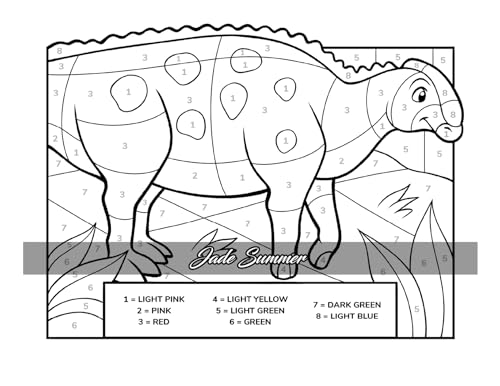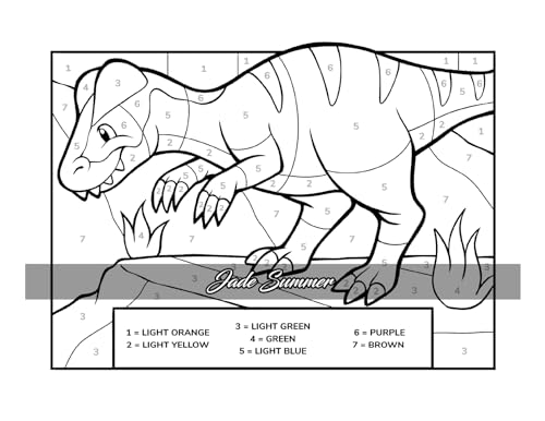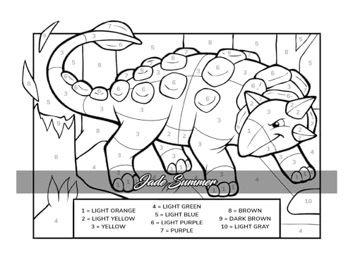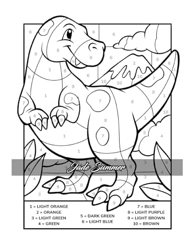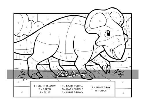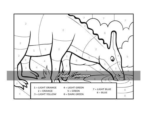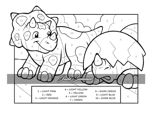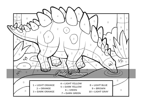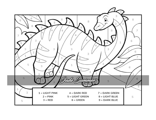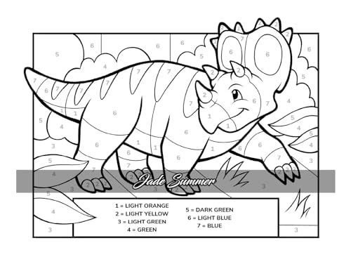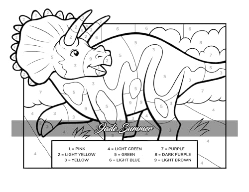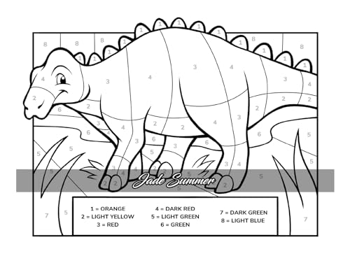 Do your kids love dinosaurs? Do you need some quiet time? If so, this is the perfect coloring book for you! 70 Dinosaurs. 50 full-page and 20 quarter-page designs on single-sided pages. Great for All Skill Levels. Easy designs with bold lines and large spaces. Learning and Creativity. Practice numbers while developing artistic skills. Makes a Perfect Gift. Celebrate Christmas, Easter, birthdays, and special occasions. Buy with Confidence. Jade Summer has 100,000+ five-star ratings! Kids will love coloring over 70 dinosaurs and prehistoric creatures including their favorites – Tyrannosaurus Rex, Stegosaurus, Triceratops, and many more! Our kid-friendly coloring pages were drawn with bold lines on single-sided pages, so it is easy for all skill levels to make something beautiful! Our dinosaur coloring book is an entertaining craft activity for boys and girls ages 4-8 to develop their artistic skills, practice their numbers, and have fun the old fashioned way – without their devices. Coloring is a wonderful way to help kids relax and give busy parents some much needed quiet time! Our easy-to-color designs make coloring simple by dividing each image into individual parts. Kids can follow our basic color chart to complete each page step-by-step. Our book is a great way for kids to practice numbers, develop eye-hand coordination, and be creative. This book contains the same images as “Dinosaur Coloring Book” (but with numbers).