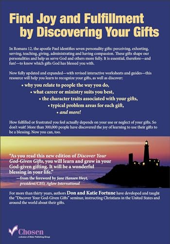 Don and Katie Fortune have updated their bestselling handbook Discover Your God-Given Gifts, now fully revised and expanded for a whole new generation. Using the listing in Romans 12:6-8, the Fortunes help readers see how these “motivational” gifts are the driving force in our lives. They shape our personalities and help us serve God and others more fully. With interactine worksheets and guides, Don and Katie help readers recognize their own unique gifts and why they act and think the way they do. With this knowledge, readers will be empowered to use their motivational gifts to further the kingdom–bringing the greatest sense of joy and fulfillment they have ever known.