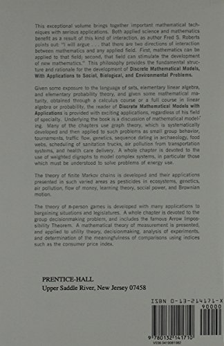 This textbook teaches discrete mathematical modeling for application in social, biological, and environmental sciences.