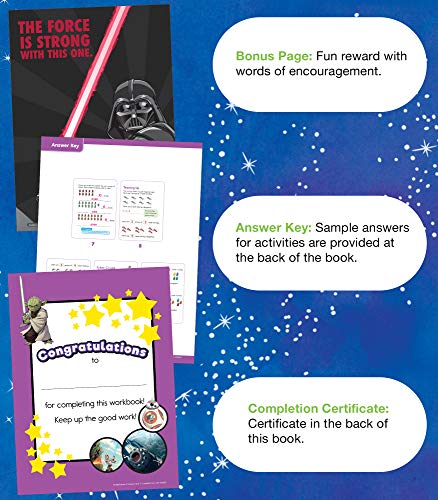 Workbook Features: * Ages 7-9, Grades 2-3 * 64 pages, about 8 inches x 10 1/2 inches * Practice multiplying and dividing numbers through 100 * Features Luke Skywalker, Rey, Yoda, and more! * Includes key math formulas and equations Focused Practice: Disney Learning’s Smart Skills Star Wars Workbook helps second and third graders develop essential math skills to prepare them for the years ahead. The 64-page workbook features beloved Star Wars characters such as Luke Skywalker, Rey, Yoda, and many more to keep young learners engaged with fun, educational activities that help to develop important math skills. What’s Included: This activity-packed workbook focuses on practicing to multiply and divide numbers through 100 through engaging activities and key formulas. Combine groups of droids, divide Resistance ships for missions, and solve puzzles with Chewbacca and the porgs in this 64-page activity book. How It Works: Children follow along with each activity–calculating answers for each lesson to enhance their early mathematical skills through fun and engaging practice and illustrations. Working Together: Children learn along with their favorite Star Wars characters, making learning an exciting adventure. This activity book is great for classroom, homeschool, and extra-curricular fun, keeping kids engaged for hours on end. The Magic of Disney: Disney Learning promotes interactive learning through fun, hands-on activities with your child’s favorite Disney characters. The magic of Disney accompanies children every step of the way as they practice essential skills for school success.