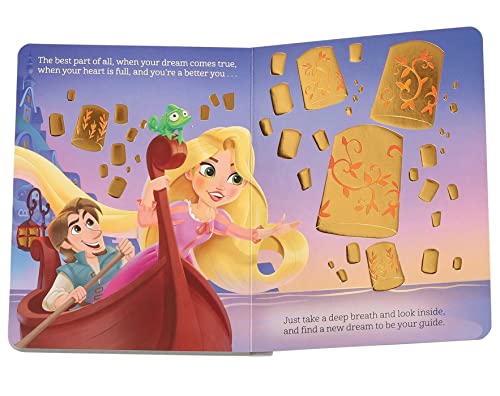 Kids can touch and feel the shiny foil as they read along with five Disney princess favorites! Every Disney princess has faced obstacles when trying to achieve her dreams, but true princesses have the heart to make it through! Ariel was brave in the face of a world that wasn’t her own. Cinderella knew being kind was important no matter the cost. Aurora knew that what’s on the inside is what counts. Moana searched for answers when she didn’t know what to do. And Rapunzel discovered that dreaming only stops when you do! In this book, follow along with a princess on every spread as they work past fear and doubt to make their dreams come true. With rhyming text, shiny touch-and-feel foil, and meaningful call-outs to movie moments–this book tells the story of these princesses in a way that both individualizes and unites them in one resounding idea: being a princess is just about doing your best!