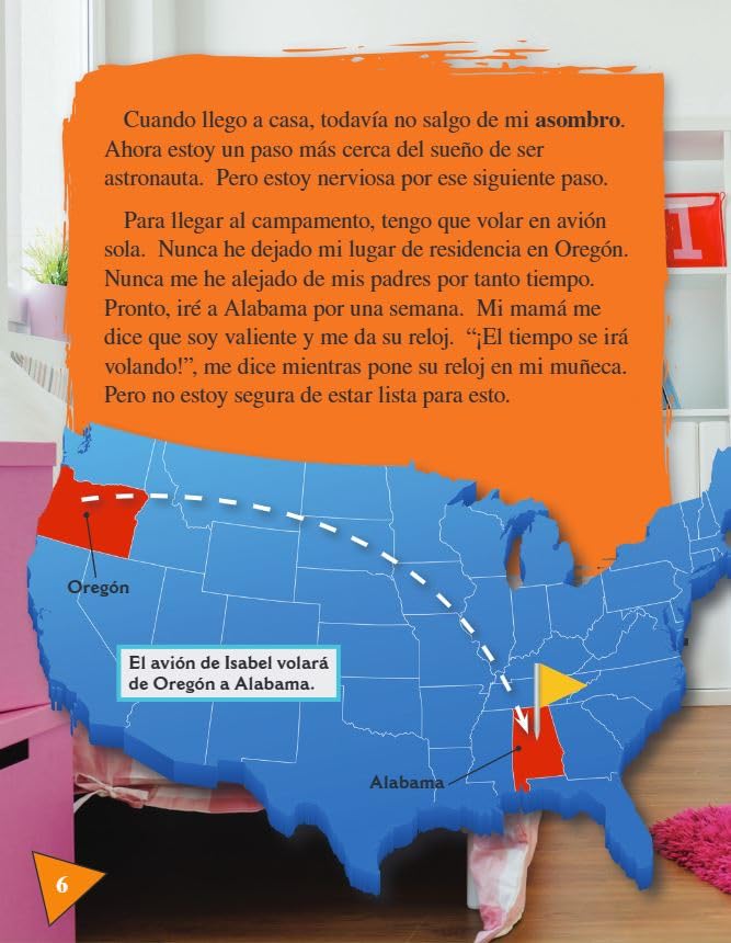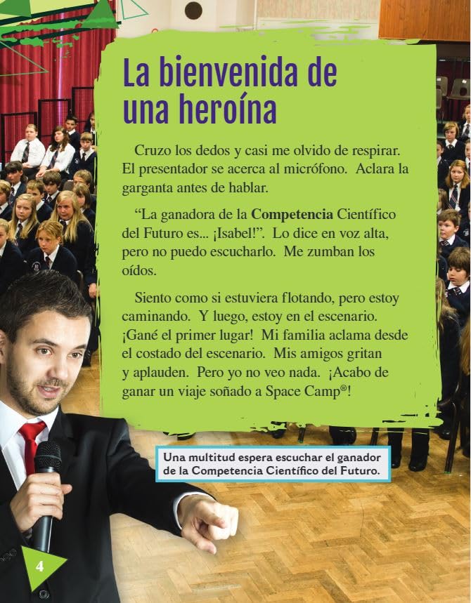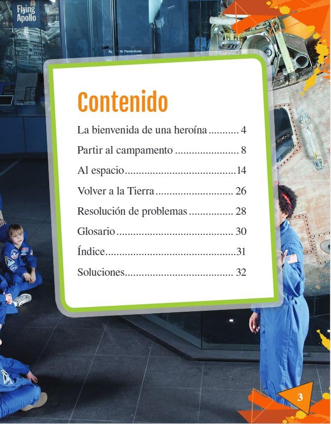 Have you ever wondered what Space Camp is like? Join Isabella as she moon walks through the Moon Room, takes a ride in a Multi-Axis Trainer, tackles the Mars Climbing Wall, and takes the helm at Mission Control. Along the way, you’ll practice measuring time. This Spanish math book seamlessly integrates the teaching of math and reading, and uses real-world examples to teach math concepts. Text features include images, a glossary, an index, captions, and a table of contents to build students’ vocabulary and reading comprehension skills as they interact with the text. The rigorous practice problems, sidebars, and math diagrams extend the learning experience and provide multiple opportunities for students to practice what they have learned. The Math Talk section provides an in-depth problem-solving experience to challenge higher-order thinking skills. Packed with fun facts, this informational text supports ESL students and STEM education.