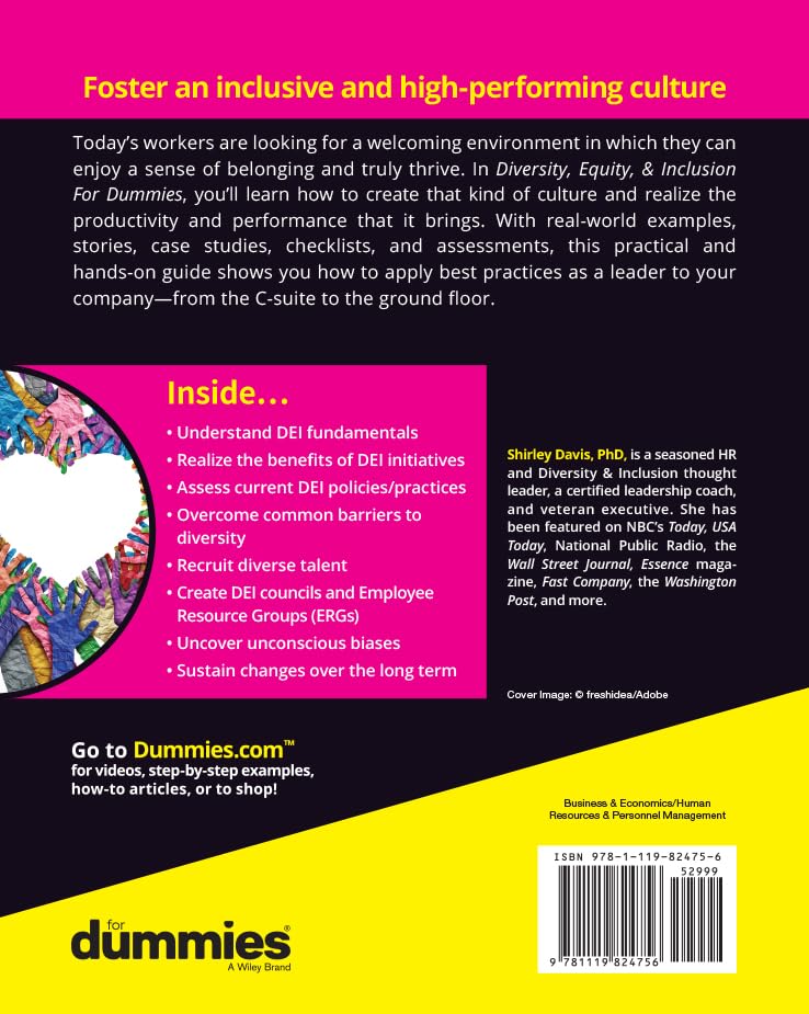Strengthen your company culture through inclusive and equitable policies and practices The global workforce and marketplace will continue to undergo dramatic demographic shifts–redefining the workplace, the workers, and how work gets done. Organizations that want to attract and retain the best talent and to capitalize on the full breath of their perspectives and experiences must first reflect our society as a whole, and secondly, must create the right kind of work environment where ALL talent can thrive. That means valuing diversity, creating more equitable policies and practices, and fostering a welcoming and inclusive culture. In Diversity, Equity & Inclusion For Dummies, global workforce expert, and three-time Chief Diversity and Inclusion Officer Dr. Shirley Davis unveils her extensive collection of real-world experiences, stories, case studies, checklists, assessments, tips, and strategies that will give you a deeper understanding of the business impact of DEI and how your role as a leader can contribute to your company’s long term success. You’ll learn: The fundamentals of DEI and how it drives business performance and impact How to conduct comprehensive DEI organizational assessments to identify systemic and institutional inequities Tactics and strategies for having necessary but difficult conversations, and how to make them impactful Skills and competencies that every leader needs in order to effectively lead the new generation of workers How to operationalize DEI across your organization, measure its impact, and sustain it long term Diversity, Equity & Inclusion For Dummies is a must-read guide for any leader at any level who wants to ready themselves for the workplace of the future and reap the benefits of a full spectrum diverse ideas, backgrounds, and experiences. It also belongs on the reading lists of human resources and DEI professionals actively seeking to go broader, deeper, and have greater impact in their DEI work.