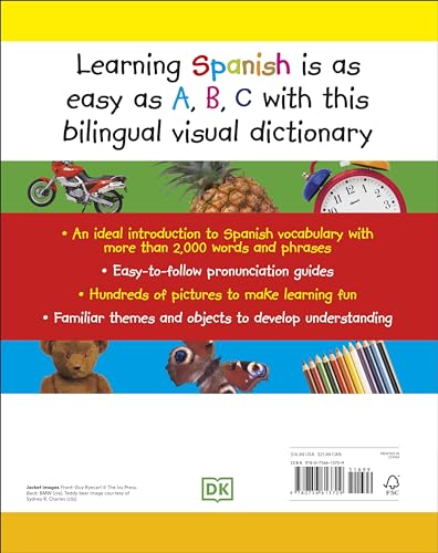 An ideal introduction to one of the most popular languages in the world! 2,000 words and phrases with easy-to-follow pronunciation guides and hundreds of pictures to make learning fun and intuitive. DK First Picture Dictionary: Spanish is structured by themes to aid learning and recall. The English to Spanish dictionary pages at the back serve as quick reference, as well as teaching children how to use a dictionary. DK First Picture Dictionary: Spanish is perfect for anyone starting to learn Spanish, either as homework aid or for self-learning for fun.
