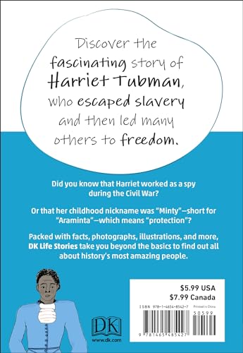 Discover the inspirational tale of this revolutionary abolitionist, Harriet Tubman. Journey back in time to the hardship days of American slavery, where slaves were brutally prosecuted daily and yearned for their freedom. Uncover the heroic tale of Harriet Tubman, an inspirational and fearless abolitionist who helped many slaves secure their freedom in this gripping and educational children’s biography. This motivational history book uncovers the trials and tribulations of Harriet Tubman’s life story, and teaches children about the atrocities of that period, endurance and bravery of the human character. Here’s what’s inside: * The story is the driver here. Follow Harriet’s tale chapter by chapter as the author unveils not just the facts, but also what Harriet was thinking and feeling — when appropriate, in her own words. There are 12 chapters in total * Full-page quotes and photo galleries scattered throughout the book keep the momentum going, helping reluctant readers along as they navigate this chaptered book * Authors are carefully chosen to ensure the voice and tone are exactly right A force to be reckoned with; Harriet Tubman was a nurse, scout, and advisor during the American Civil War. Harriet co-led the Combahee River Raid, in which 700 slaves were freed. After the war, she continued with her revolutionary plights and became involved in the fight that allowed women the right to vote, and opened a retirement home for sick and elderly African Americans. This biography contains full-color photographs and hand-drawn illustrations that complement the age-appropriate narrative text to create an engaging book that children will enjoy reading. Definition boxes, information sidebars, maps, inspiring quotes and other nonfiction text features add extra depth. The convenient, easy-to-follow reference section at the back of the book makes this a great resource for children, teachers and librarians. DK Life Stories biography series goes beyond the basic facts to tell the true-life stories of history’s most interesting people. Each book includes an author’s introduction letter as well as a glossary, timeline, family tree, quiz and index. Add Life Stories: Anne Frank or Life Stories: Martin Luther King Jr. to your collection!