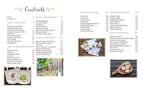 Improve and decorate your garden and home with easy projects and beautiful crafts. Make a Bird and Bee bath, a Flower Press, a Foraged Garland, Herb Napkins Rings, and much much more! With step-by-step instructions illustrated in full color. Create your dream garden with simple bird baths, herb drying racks, and unique planters. And bring the outdoors indoors with natural fabric dyes, pressed flower paper, and herbal bouquets. DIY Garden Projects and Crafts book relies on home grown and foraged materials that will inspire creativity and capture the bounty of the seasons. The sixty practical and decorative projects for use in the garden and home include: Gardener’s Tool Apron Metal garden charms Veggie Market Tote Macrame produce bag Gourd bird feeder Kirigami leather hanging planter Tomato cage plant stand Shibori Dyed Fabric Herbal lotion bars Gardener hand scrub All-purpose thyme cleaner And more! Do-It-Yourself Garden Projects and Crafts features detailed, step-by-step instructions as well as simple crafting and gardening tips that will make your projects successful.