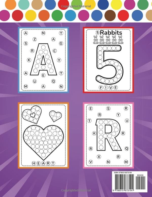 Unlock your child’s creativity and learning with this interactive Dot Markers Activity Book! Designed for toddlers and preschoolers ages 2 and up, this book introduces early learners to letters, numbers, and shapes in a fun and engaging way. The book is divided into sections, each focusing on a different learning element. Some pages feature large, easy-to-dot letters, while others introduce numbers 1-10 or basic shapes. With fixed 0.75-inch (18mm) dots, this book is designed for dot markers, helping children develop fine motor skills and hand-eye coordination in an enjoyable hands-on experience. Key Features: ABC, 123 & Shapes: Helps children recognize letters, numbers, and shapes through interactive dot coloring. Perfect for ages 2+: Simple and engaging activities designed for toddlers and preschoolers. Large format: 8.5 x 11-inch pages provide plenty of space for dot marker fun. Clear and engaging designs: Each section contains playful illustrations to reinforce learning. Fixed dot size: Large, clear 0.75-inch (18mm) dots, perfect for use with dot markers. Single-sided pages: Prevents color bleed-through for a mess-free experience. Glossy cover: A vibrant, durable cover to attract and engage young learners. Supports early learning: Encourages letter, number, and shape recognition while improving hand-eye coordination and motor skills. this Dot Markers Activity Book offers an exciting way for little ones to explore letters, numbers, and shapes while having fun with dot markers. Give your child a head start on their learning journey today!