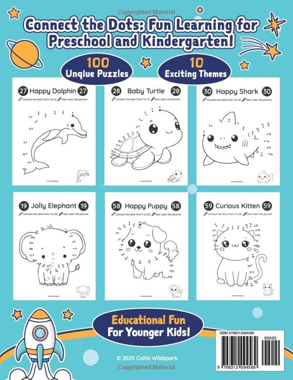 Dot to Dot For Kids Ages 3-5: 100 Fun Puzzles with 10 Exciting Themes! Learn and Play with Pet Friends, Ocean Animals, Space, Vehicles, Dinosaurs, and More!