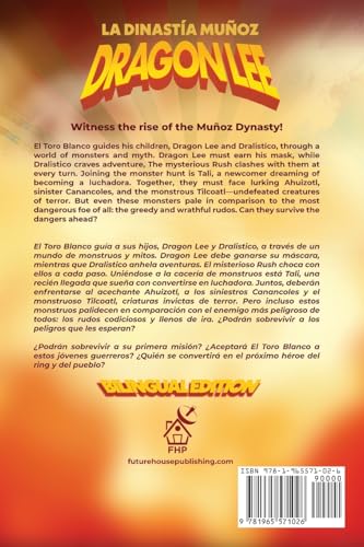 Witness the rise of the Munoz Dynasty! El Toro Blanco guides his children, Dragon Lee and Dralistico, through a world of monsters and myth. Dragon Lee must earn his mask, while Dralistico craves adventure, The mysterious Rush clashes with them at every turn. Joining the monster hunt is Tali, a newcomer dreaming of becoming a luchadora. Together, they must face lurking Ahuizotl, sinister Canancoles, and the monstrous Tilcoatl-undefeated creatures of terror. But even these monsters pale in comparison to the most dangerous foe of all: the greedy and wrathful rudos. Can they survive the dangers ahead? El Toro Blanco guia a sus hijos, Dragon Lee y Dralistico, a traves de un mundo de monstruos y mitos. Dragon Lee debe ganarse su mascara, mientras que Dralistico anhela aventuras. El misterioso Rush choca con ellos a cada paso. Uniendose a la caceria de monstruos esta Tali, una recien llegada que suena con convertirse en luchadora. Juntos, deberan enfrentarse al acechante Ahuizotl, a los siniestros Canancoles y el monstruoso Tilcoatl, criaturas invictas de terror. Pero incluso estos monstruos palidecen en comparacion con el enemigo mas peligroso de todos: los rudos codiciosos y llenos de ira. ?Podran sobrevivir a los peligros que les esperan? ?Podran sobrevivir a su primera mision? ?Aceptara El Toro Blanco a estos jovenes guerreros? ?Quien se convertira en el proximo heroe del ring y del pueblo?