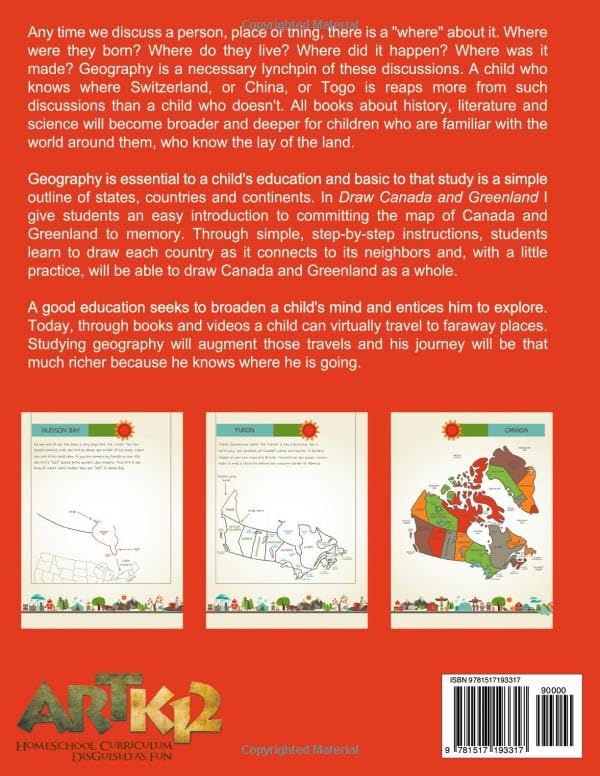 Geography is essential to a child’s education. And basic to that study is a simple outline of provinces, countries and continents. In Draw Canada and Greenland I have tried to give students an easy introduction to committing the map of Canada and Greenland to memory. Through simple, step-by-step instructions, kids learn to draw each province and territory as they connect to their neighbors and, with a little practice, will be able to draw Canada and Greenland as a whole. Education seeks to broaden a children’s minds, to entice them to explore. Through books, and videos kids can virtually travel to faraway places; studying geography will augment those travels and their journey will be that much richer because they know where they are going. By giving children a primer in the borders and locations of states, provinces and countries I hope to invite them further into the beautifully complicated world of geography.