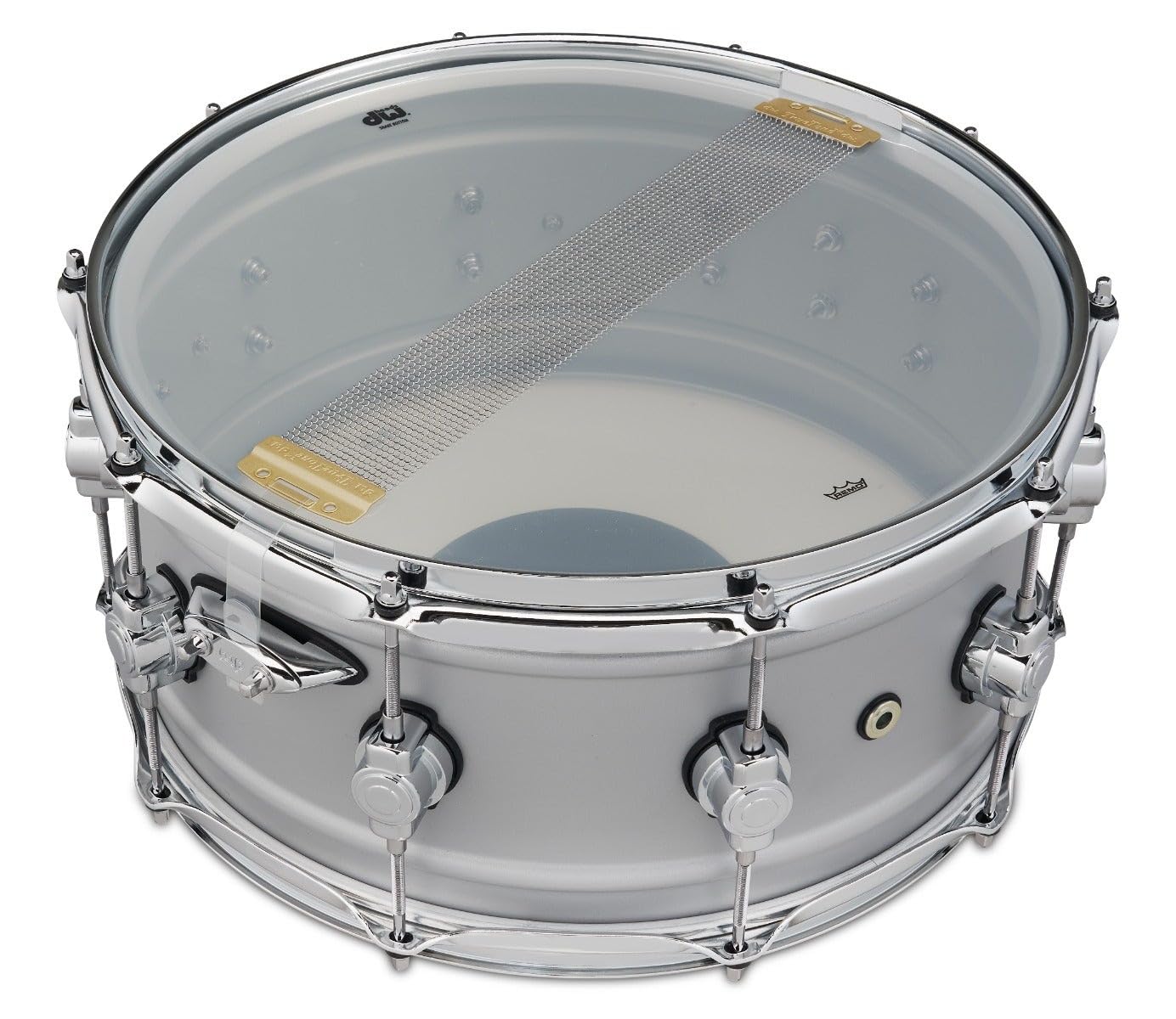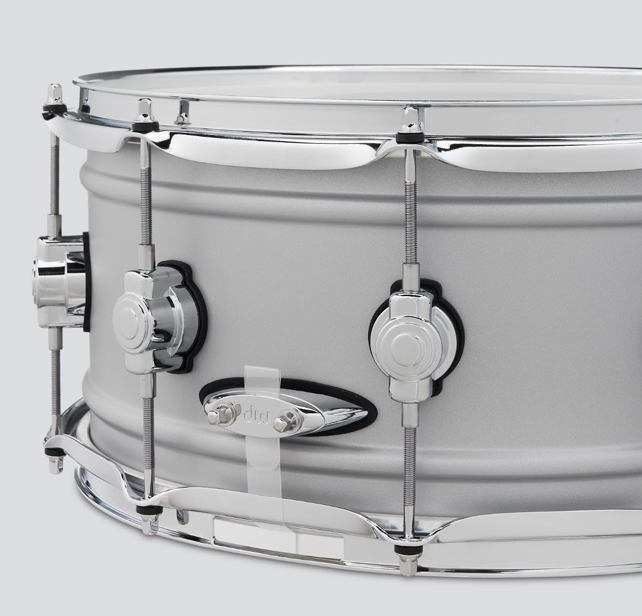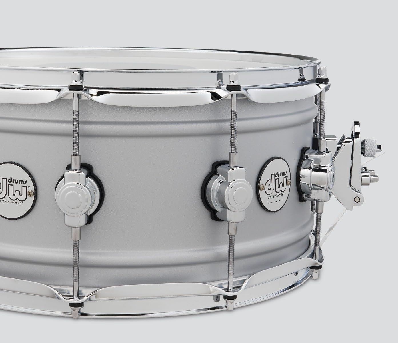 The DW Design Series raised the bar for value by making custom-inspired drums available to more drummers than ever before. This Design Series snare beaded aluminum shell with a matte finish for “workhorse-style” tone and versatility with a classy finish. The thin beaded aluminum shell offers a more resonant tone with more overtones than their thicker rolled-shell cousins, while producing a rounder attack with drier resonance. The drum also has rolled bearing edges, snare beds and is chrome hardware. This snare is fitted with DW’s MAG throw-off, Design Series snare lugs, and triple-flange hoops.