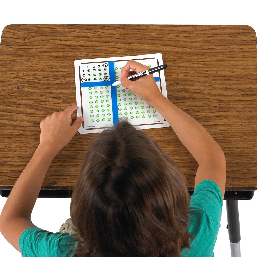 - Each dry-erase array board is double-sided, with one side featuring printed columns and rows (#1-12)