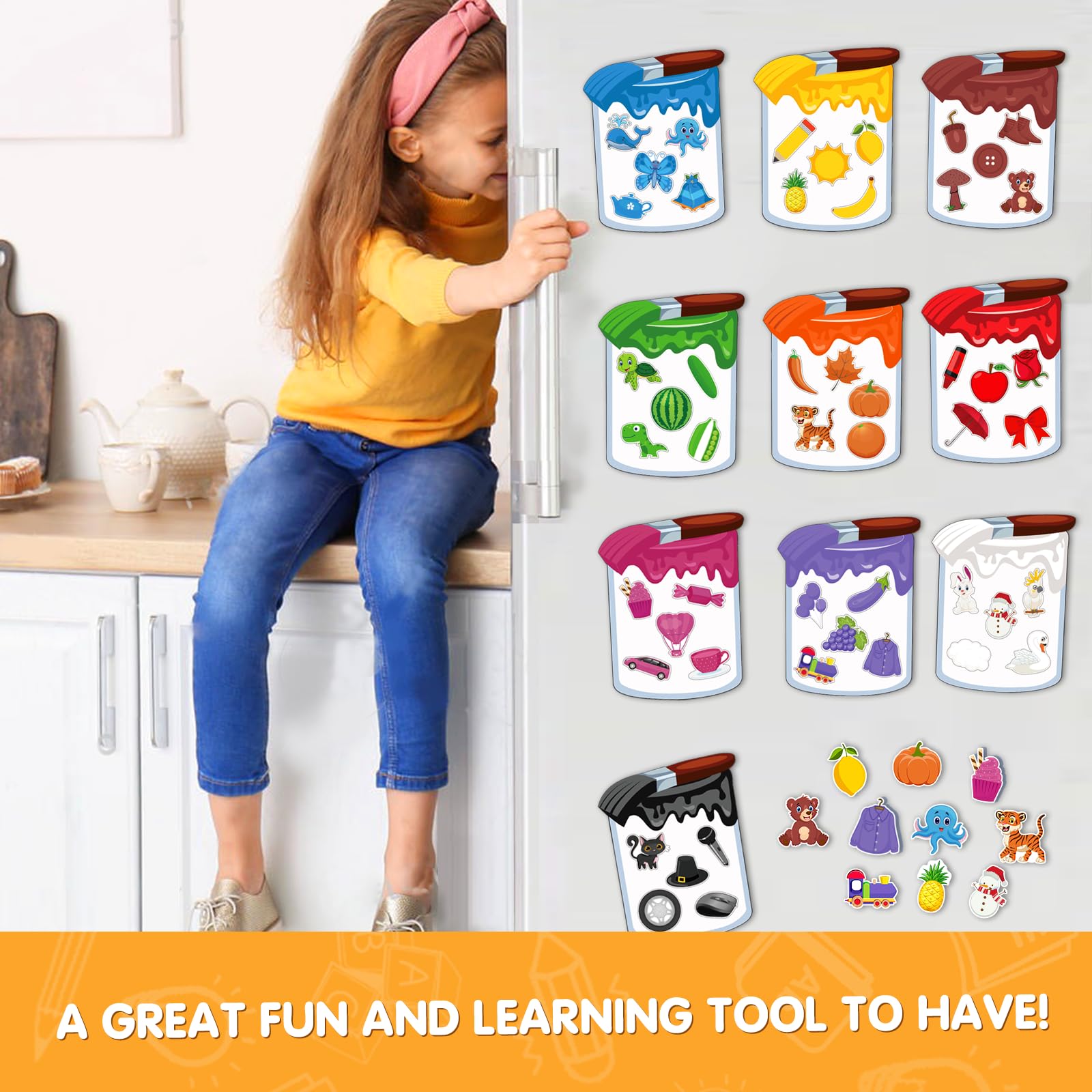 EASY TO USE : Learning magnets sets can work both together and separately; Kids can easily match magnetic objects with paint bucket of the same color, enhancing their ability to recognize colors during play; Bright color design will stimulate their creativity and interest in learning!