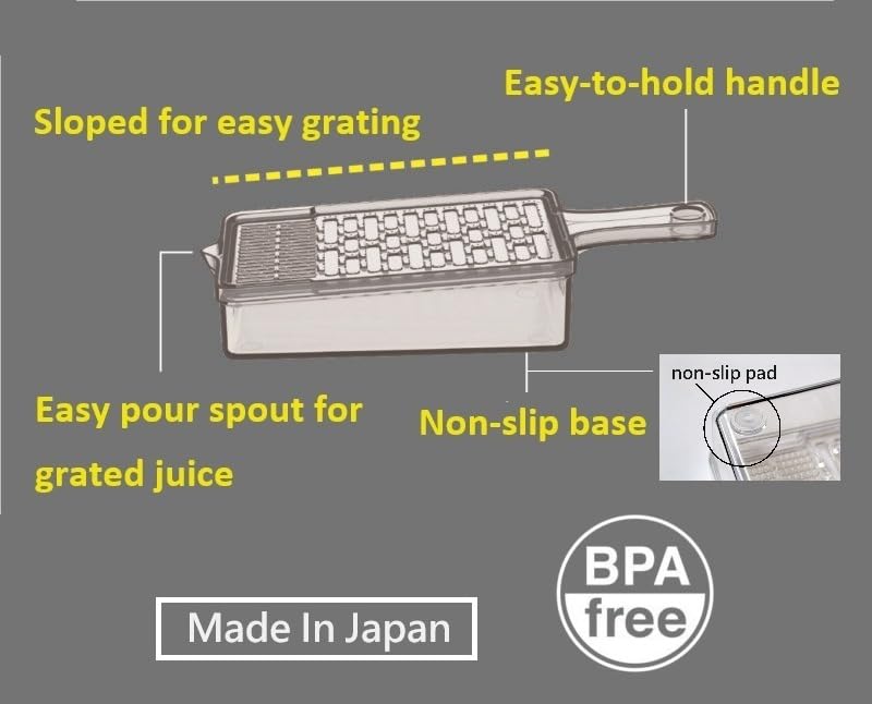 - Juicing Function : After grating, you can squeeze out the juice by simply standing the grater on the receiving plate and sliding it. This eliminates the need to squeeze juice manually with your hands or a cloth, making it easy to use.