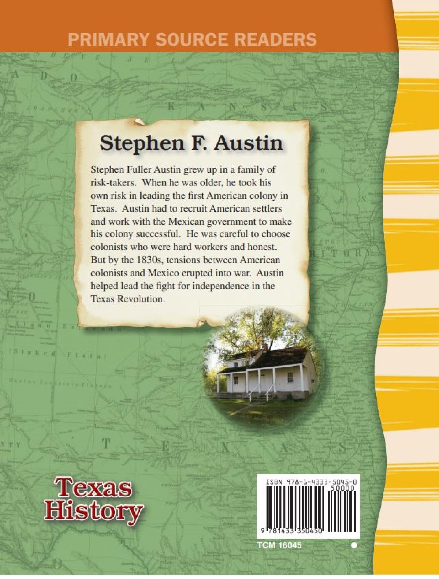 Yee-haw! Grab your cowboy boots and saddle up to explore early Texas history. From influential Texan figures to what life was like in Texas as a young state, this 6-book collection is sure to have young readers engaged from cover to cover. Each book in this collection features intriguing facts, easy-to-read text, and appealing images that work in conjunction with an accessible glossary and index to help readers navigate their way through the text. Titles in this collection include: Sam Houston: A Fearless Statesman; Leaders in the Texas Revolution: United for a Cause; War, Cattle, and Cowboys: Texas as a Young State; Stephen F. Austin: The Father of Texas; The Annexation of Texas: From Republic to Statehood; The Texas Revolution: Fighting for Independence.