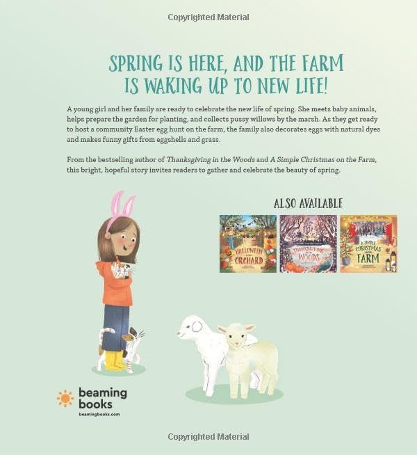 Spring is here, and the farm is waking up to new life! A young girl and her family are ready to celebrate the new life of spring. She meets baby animals, helps prepare the garden for planting, and collects pussy willows by the marsh. As they get ready to host a community Easter egg hunt on the farm, the family also decorates eggs with natural dyes and makes funny gifts from egg shells and grass. From the bestselling author of Thanksgiving in the Woods and A Simple Christmas on the Farm, this bright, hopeful story invites readers to gather and celebrate the beauty of spring. Backmatter includes handmade Easter craft activities, including coloring eggs with natural dyes and making eggshell critters. Easter on the Farm is the fourth in the Countryside Holiday series.
