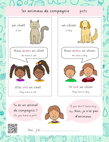 A refreshingly fun French activity book for beginners (A1 Level) with puzzles, coloring pages, word searches, find-and-count activities, drawing exercises, spelling practice, and more. Plus, pronunciation videos are included! An activity-based approach to French for children aged 6+ Written by a native French speaker. Book dimensions: 8.5 x 11 inches / 21.59 x 27.94 cm 50+ color pages Young children may be hesitant to start learning a new language. They need easy-to-follow lessons that gradually grow their knowledge and confidence in French while also expanding their vocabulary. That’s precisely what this book will help them do! This activity book: Introduces young readers to the basics, such as the alphabet, numbers, and colors Engages them with a variety of fun activities Expands their vocabulary by teaching them over 200 words across a range of topics like food, animals, body parts, and the weather Equips them with basic verbs like “to be” and “to have,” and helps them express their likes and dislikes Provides free online pronunciation videos for every vocabulary page The tone of this beautifully illustrated workbook is friendly and designed for beginners, making learning (or teaching) French easy and stress-free. Created by French author and illustrator Madly Chatterjee in collaboration with Zelie Blancardi, a French teacher at the French Institute in Edinburgh (UK) and Ava Cramp, an American copywriter. www.madlychatterjee.com
