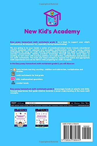 Easy peasy homeschool math worksheets grade 2 is a book to support your child’s mathematical development for, especially during homeschooling! We are giving in to your hands a series of preschool/school books include educational activity materials with selected and accessible mathematical tasks for young science enthusiasts. By using our math activity book, children develop key skills in numbers and exercise concentration. Gaining practical knowledge through play has never been so exciting. So let’s start with learning addition and subtraction, multiplication and division on our math worksheets. The book uses these prompts to expand into useful and appropriate math experiences and can be helpful while preparing for math olympiad. In the Easy peasy homeschool math worksheets grade 2, you will discover: tasks include learning counting – addition and subtraction, multiplication and division math worksheets for 2nd grade 500+ mathematical operations number bonds This combination of math activities gives the book a particularly interesting and stimulating approach and makes the book usable for any teacher. Experiences included in the book originate in children’s own explorations of math concepts in day-to-day play. Easy peasy homeschool math worksheets grade 2 encourages hands-on playful and child-focused experiences that guide children towards a sound understanding of the basic math concepts. Scroll to the top of the page and click the “BUY NOW” button.