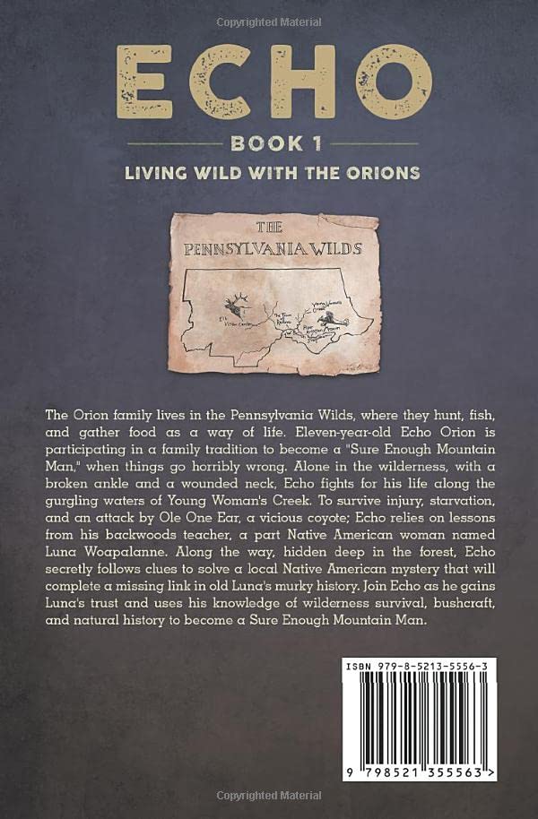 In 2023 “Echo” was named BOOK OF THE YEAR by Children’s Book International and won top honors in the “Adventure” and Realistic Fiction” categories. “It’s the next Hatchet or My Side of the Mountain!” “Historical fiction meets masterful storytelling.” “Finally! A book that teaches real outdoor skills through amazing storytelling!” It was supposed to be a simple rite of passage, not a test of Echo’s wilderness survival skills. Will his handmade hickory bow and lessons from his Native American teacher keep him alive? Alone in the wilderness and badly injured, Echo fights for his life along the gurgling waters of Young Woman’s Creek. To survive Echo relies on lessons from his backwoods teacher, a part Native American woman named Luna Woapalanne. Hidden deep in the forest, Echo secretly follows clues to solve a Native American mystery that will complete a missing link in old Luna’s murky past. Join Echo as he gains Luna’s trust and uses his knowledge of wilderness survival, bushcraft, and natural history to become a “Sure Enough Mountain Man.” A thrilling wilderness adventure story for readers 8-108! Written by a wildlife biologist, It teaches wilderness survival, wildlife conservation, bushcraft, and natural history through page-burning storytelling. A great read aloud book for ages 5-8. “We can’t recommend this book enough to families wanting to inspire a love for the outdoors, bravery, ingenuity, responsibility, courage, and friendship.” “Please buy this for your kids – they will love it!!! After your kids read it- you should too….extremely educational and entertaining read!” “The author’s writing of Echo’s adventures through the forest was so immersive, it pulled us off our own couch and back into the woods.” “I felt like I was right in the forest with Echo and couldn’t wait to see what he did next. An amazing work of fiction that could be true, which made it such an incredible read.”