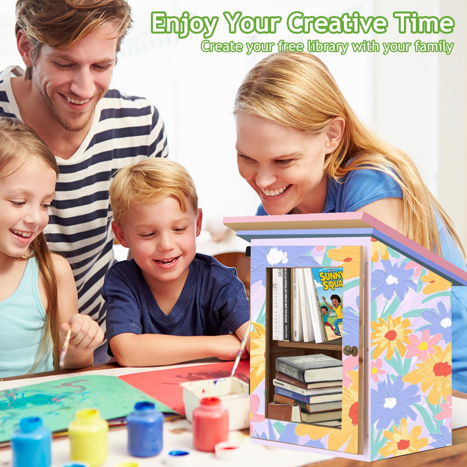 • Paint Your Ideal Library: Before assembling the library, you can use a paintbrush to draw your favorite pattern on the library. Have fun creating it, Note that please spray the boards with waterproof paint after creation to ensure a longer product life