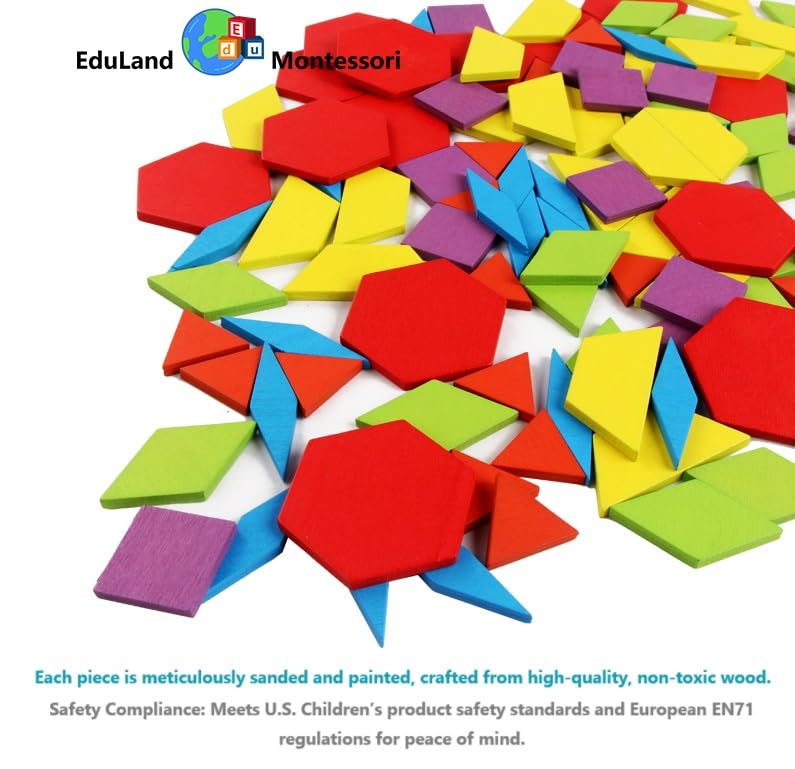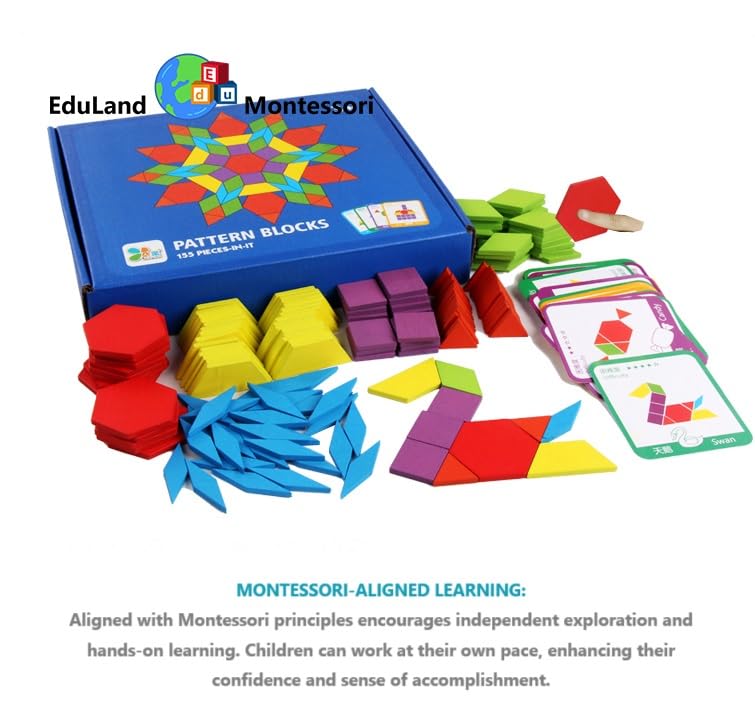 ENGAGING AND CREATIVE: Our Wooden Pattern Blocks provide a fun and imaginative way for children to explore shapes and symmetry. Featuring 155 vibrant pieces, kids can create a variety of forms, including animals, insects, and everyday objects, promoting creative expression. SAFE AND DURABLE MATERIAL: Each piece is meticulously sanded and painted, crafted from high-quality, non-toxic wood. Safety Compliance: Meets U.S. Children’s product safety standards and European EN71 regulations for peace of mind.These durable materials ensure that your child can play safely and enjoyably. MULTIFUNCTIONAL LEARNING TOY: This versatile toy supports multiple areas of development, including: Shape Recognition: Helps children identify and categorize different geometric shapes. Color Identification: Encourages exploration of colors and their combinations. Fine Motor Skills: Manipulating the blocks promotes hand-eye coordination and dexterity. Problem-Solving: As children create designs, they engage critical thinking and spatial reasoning. Imaginative Play: Inspires creativity as children invent stories around their creations. MONTESSORI-ALIGNED LEARNING: Aligned with Montessori principles, this toy encourages independent exploration and hands-on learning. Children can work at their own pace, enhancing their confidence and sense of accomplishment. PERFECT GIFT CHOICE: An ideal gift for holidays, birthdays, or any occasion! This engaging puzzle game promotes family bonding and collaborative play, allowing older kids and adults to join in for a wonderful shared experience. SATISFACTION GUARANTEE: We design every toy to inspire joy and creativity in your child. We hope your little ones have endless fun! If you’re not completely satisfied, please reach out to us.