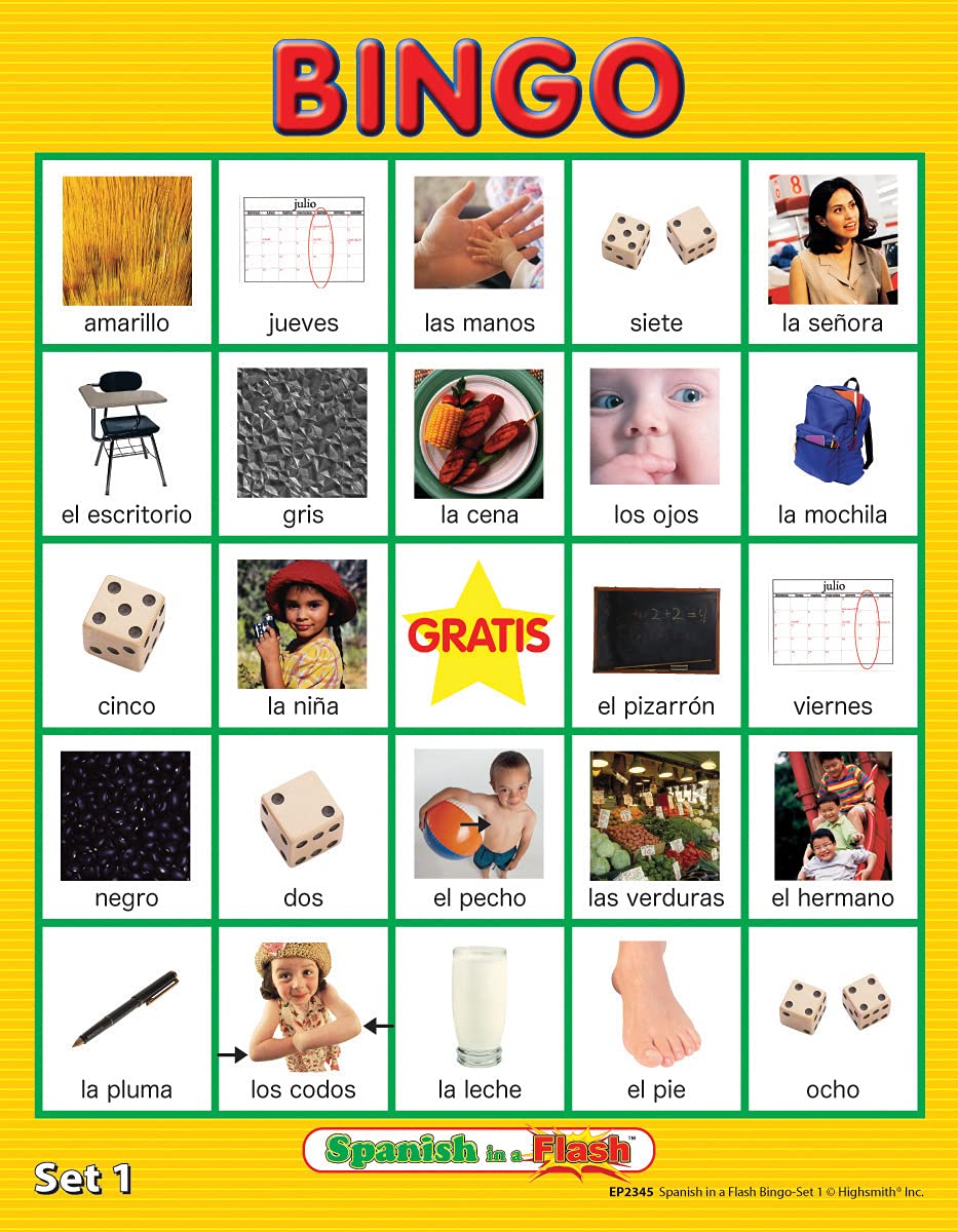 Spanish in a flash is a learning system that makes it easy for students to work at their own pace as they master sets of words. Bingo games feature photographic images. Words correspond to Spanish in a flash cards. Supports requirements of title I and other federally funded programs.