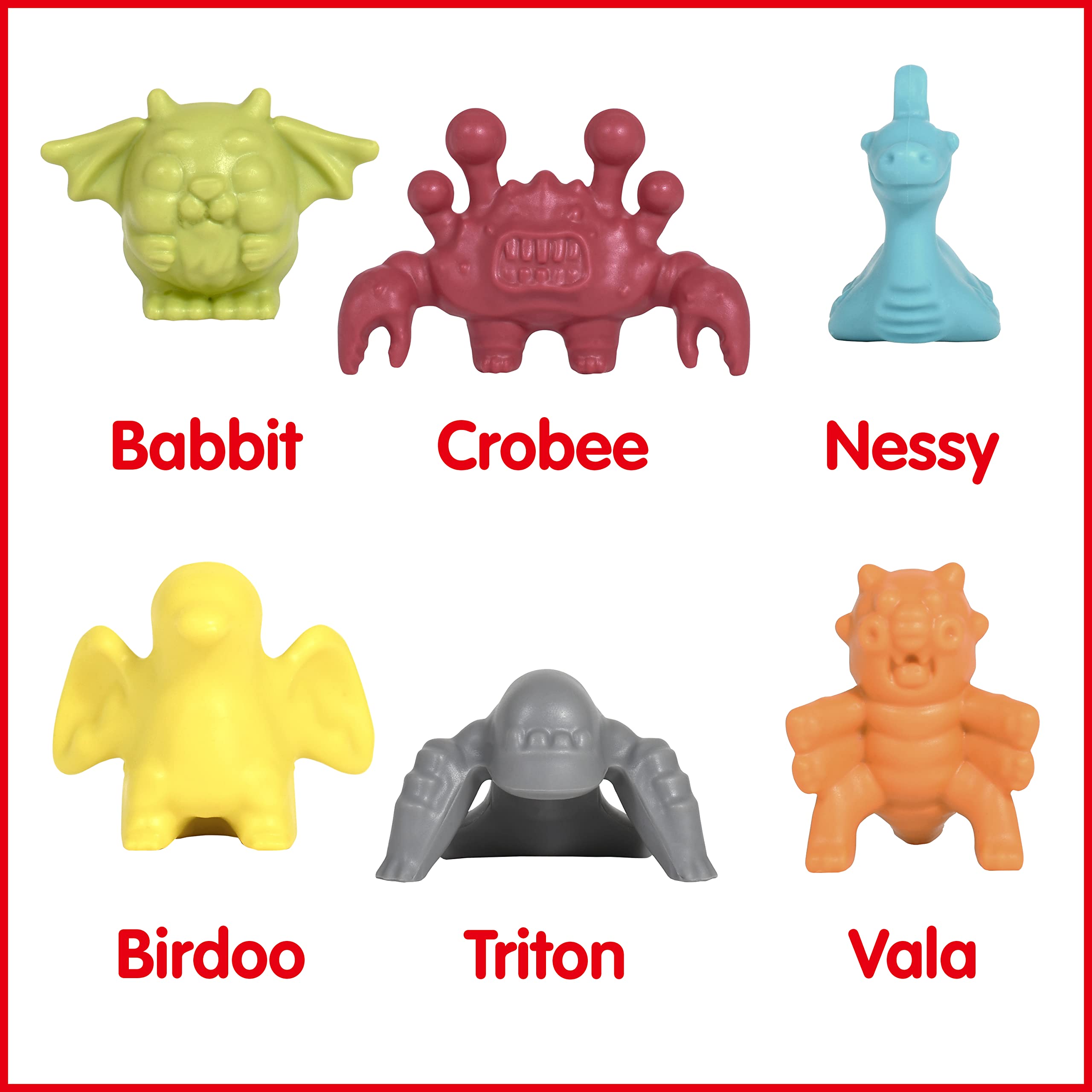 This set includes 72 counters, 10 double-sided activity cards and 1 transparent spinner. The counters feature 6 bright colors and 6 monster shapes: Babbit, Birdoo, Crobee, Nessy, Triton and Vala. Monster counters assist with the development of early math skills such as sorting, patterning and sequencing. Children can also use Monster Counters as a hands-on resource to practice addition, subtraction and multiplication. Each counter features monstrous characteristics for children to sort and classify. Create sequences and patterns with these detailed counters that feature wings, tails and more. The activity cards feature varying levels of difficulty so children can learn through play. Practice early measurement concepts, sequences, counting, patterning, sudoku and more. Made from TPR (thermoplastic rubber), these counters are pliable and smooth, yet firm. For ages 3+. Size of Vala monster: 1.4″H x 1.1″W.