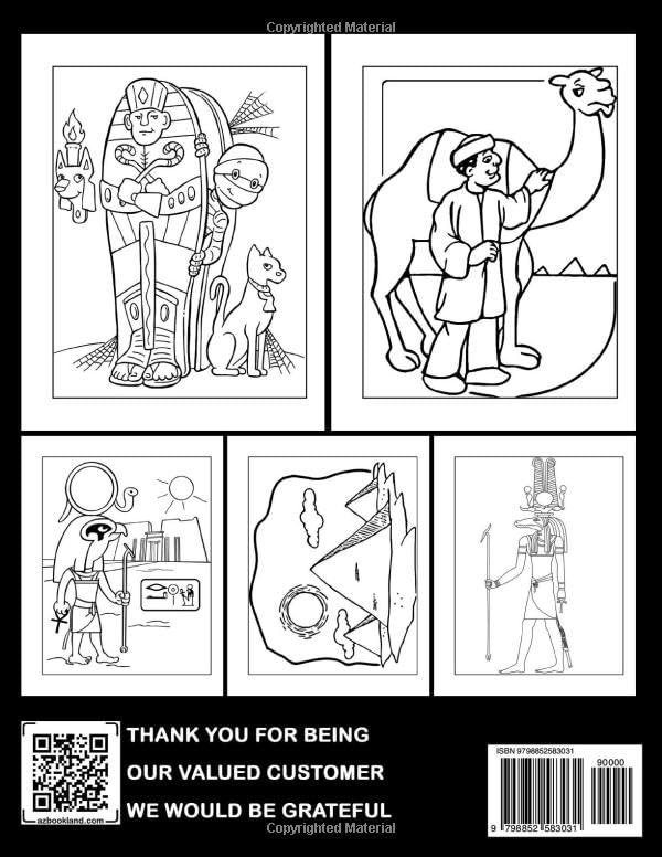 EGYPT COLORING BOOK FOR KIDS This is adventure travel to Ancient Egypt. This creative book is packed full of cool coloring pages full of Egyptian and Royal symbols and easily designed to be perfect for kids, toddlers to color. The book will be a tool that teaches you about God and Goddess from Egypt in ancient times. Take the crayons in hand and let’s start coloring! This wonderful book is a great gift for adults, inspiring you for hours of fun and engagement, featuring coloring pages with beautiful pictures. The book is suitable for men and women. CUTE ILLUSTRATIONS: Find Unique And Cute designs for grown-up people to color in more than 25-30 enchanting pieces of art. Special no repeated Illustrations for a high level of comfort for customers. BOOST YOUR CREATIVITY: Not only one of the optimal ways to educate but also entertain them. Grown-up people will have the opportunity to boost their problem-solving skills and develop their focus. ONE-SIDED PRINTING: Each coloring page is on one sheet and doesn’t worry about bleeding through. Perfect with your choice of coloring tools such as Crayon, Gel Pens, Markers, or Colored Pencils. BOOK SIZE: High-quality pages with a reasonable size of 8.5×11. The large size is suitable to color comfortably with a soft glossy cover. PERFECT GIFT IDEA: This item can be used as a Christmas, Secret Santa, Birthday, or a nice thoughtful surprise gift for your kids with more fun and inspiration. This will be a great way to express your love for them! We hope that you will be satisfied with the illustrations inside this book! Thank You For Being Our Customer
