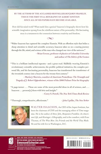 By the author of the acclaimed bestsellers Benjamin Franklin and Steve Jobs, this is the definitive biography of Albert Einstein. How did his mind work? What made him a genius? Isaacson’s biography shows how his scientific imagination sprang from the rebellious nature of his personality. His fascinating story is a testament to the connection between creativity and freedom. Based on newly released personal letters of Einstein, this book explores how an imaginative, impertinent patent clerk–a struggling father in a difficult marriage who couldn’t get a teaching job or a doctorate–became the mind reader of the creator of the cosmos, the locksmith of the mysteries of the atom, and the universe. His success came from questioning conventional wisdom and marveling at mysteries that struck others as mundane. This led him to embrace a morality and politics based on respect for free minds, free spirits, and free individuals. These traits are just as vital for this new century of globalization, in which our success will depend on our creativity, as they were for the beginning of the last century, when Einstein helped usher in the modern age.