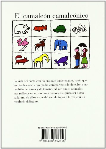 La vida del camaleon era bastante aburrida. Hasta que un dia fue al zoo. Vio animales tan distintos, grandes, elegantes y divertidos que quiso ser como cada uno de ellos y como todos al mismo tiempo. Y hasta se le antojo ser como las personas. Se hizo un lio tan monumental que al fin decidio ser una sola cosa.