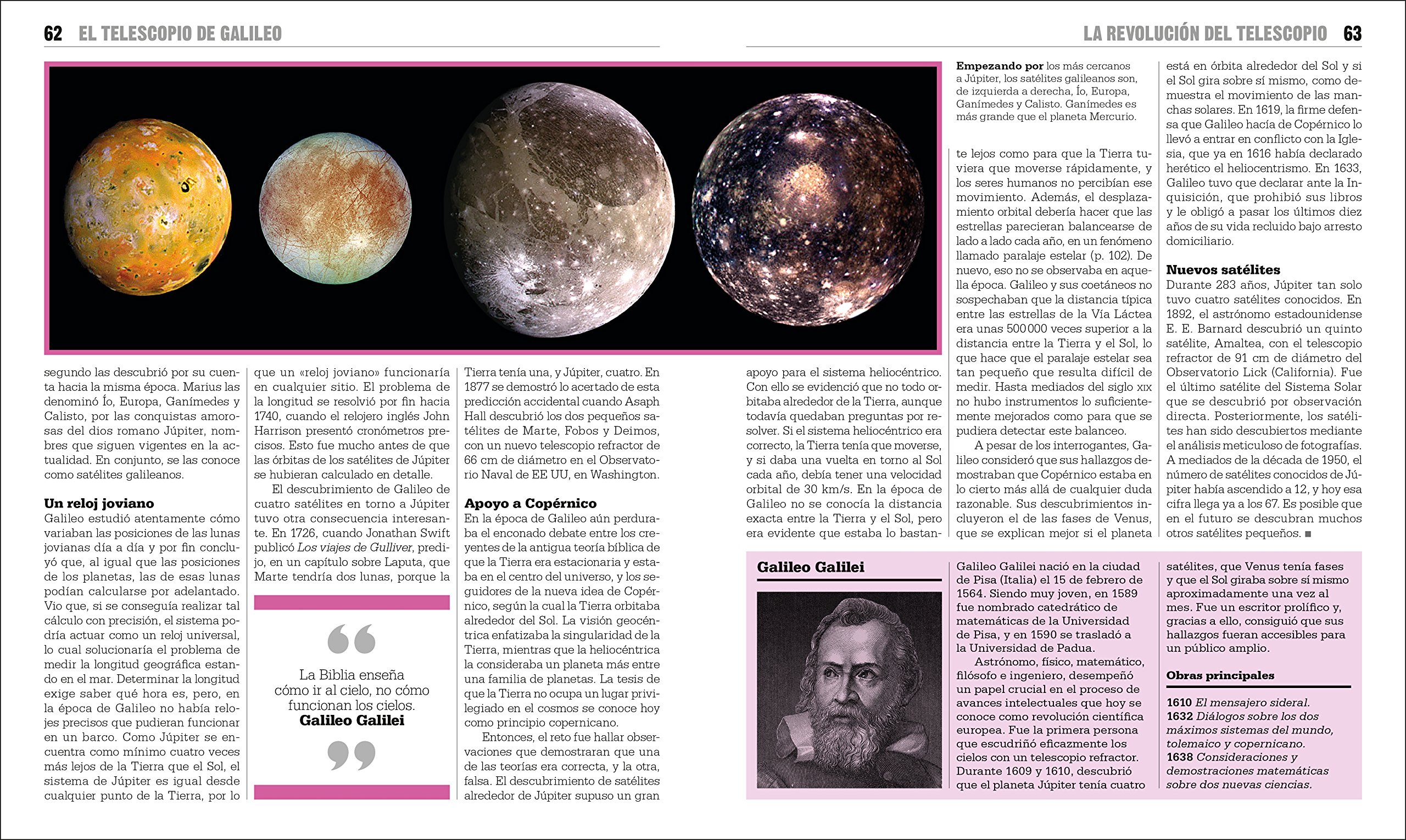 This Spanish-language book explains the history and complex concepts of astronomy, aiding science and foreign language comprehension.