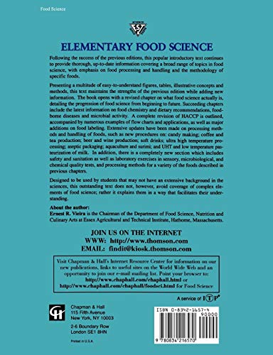 An Aspen Food Science Text Series Book. Following the success of the previous editions, this popular introductory text continues to provide thorough, up-to-date information covering a broad range of topics in food science, with emphasis on food processing and handling and the methodology of specific foods. Presenting a multitude of easy-to-understand figures, tables, illustrated concepts and methods, this text maintains the strengths of the previous edition while adding new information. The book opens with a revised chapter on what food science actually is, detailing the progression of food science from beginning to future. Succeeding chapters include the latest information on food chemistry and dietary recommendations, food borne diseases and microbial activity. A complete revision of HACCP is outlined, accompanied by numerous examples of flow charts and applications, as well as major additions on food labeling. Extensive updates have been made on processing methods and handling of foods, such as new procedures on: candy making; coffee and tea production; beer and wine production; soft drinks; ultra high temperature processing; aseptic packaging; aquaculture and surimi; and UHT and low temperature pasteurization of milk. In addition, there is a completely new section which includes safety and sanitation as well as laboratory exercises in sensory, microbiological, chemical quality test, and processing methods for a variety of the foods described in previous chapters.