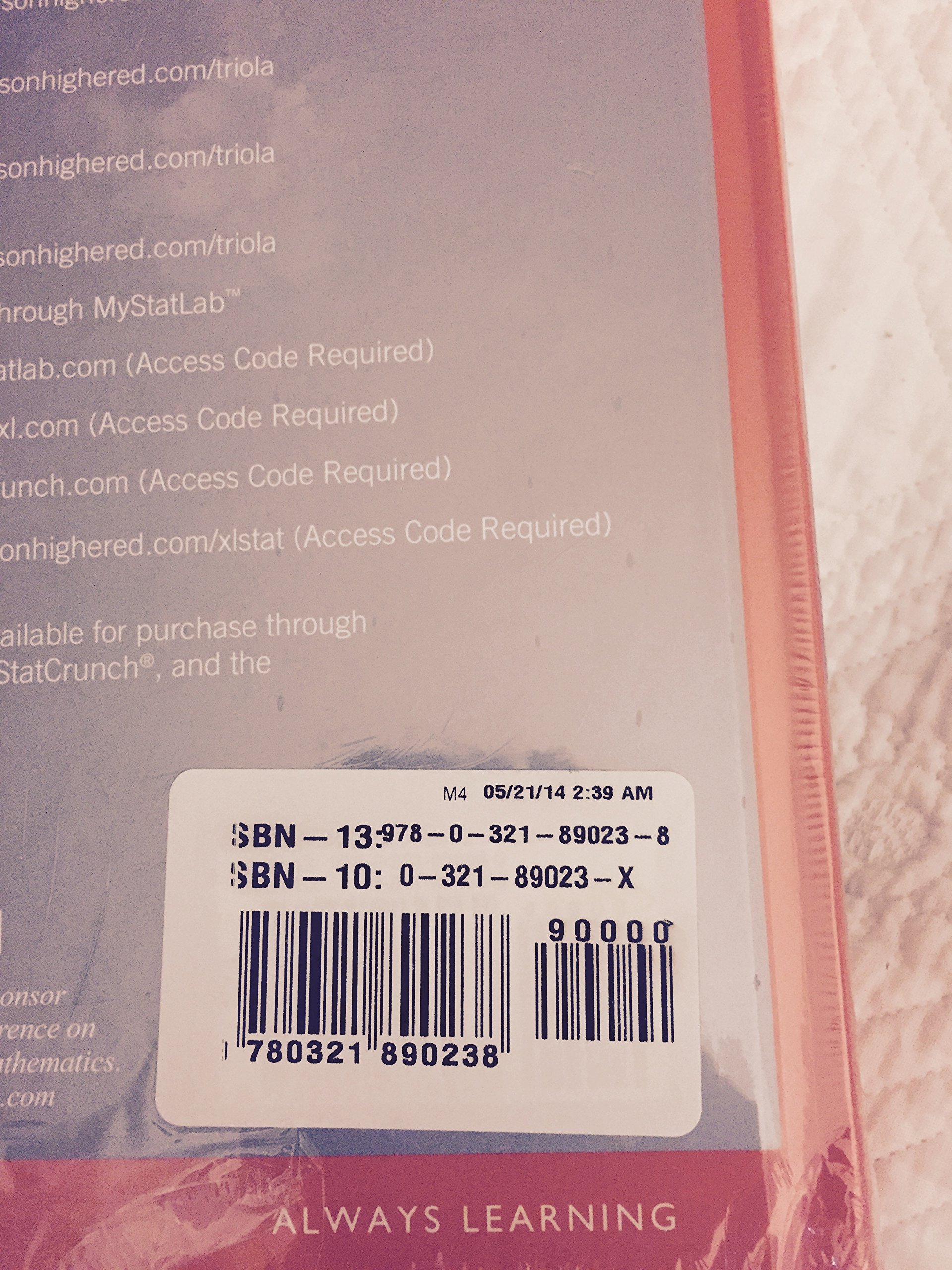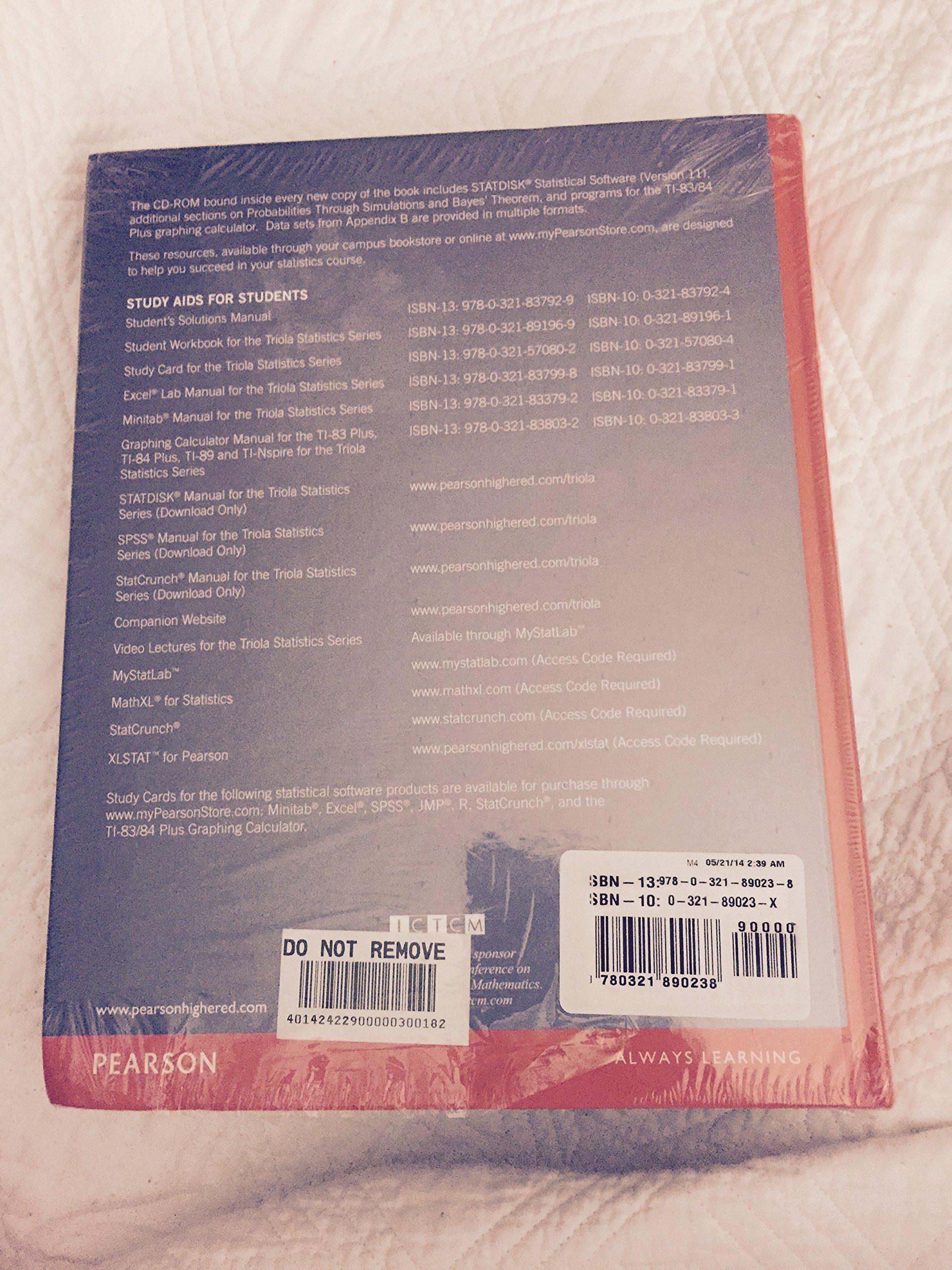 ALERT: Before you purchase, check with your instructor or review your course syllabus to ensure that you select the correct ISBN. Several versions of Pearson’s MyLab & Mastering products exist for each title, including customized versions for individual schools, and registrations are not transferable. In addition, you may need a CourseID, provided by your instructor, to register for and use Pearson’s MyLab & Mastering products. Packages Access codes for Pearson’s MyLab & Mastering products may not be included when purchasing or renting from companies other than Pearson; check with the seller before completing your purchase. Used or rental books If you rent or purchase a used book with an access code, the access code may have been redeemed previously and you may have to purchase a new access code. Access codes Access codes that are purchased from sellers other than Pearson carry a higher risk of being either the wrong ISBN or a previously redeemed code. Check with the seller prior to purchase. — From SAT scores to job search methods, statistics influences and shapes the world around us. Marty Triola’s text continues to be the bestseller because it helps students understand the relationship between statistics and the world, bringing life to the theory and methods. Elementary Statistics raises the bar with every edition by incorporating an unprecedented amount of real and interesting data that will help instructors connect with students today, and help them connect statistics to their daily lives. The Twelfth Edition contains more than 1,800 exercises, 89% of which use real data and 85% of which are new. Hundreds of examples are included, 91% of which use real data and 84% of which are new. New coverage of Ethics in Statistics highlights new guidelines that have been established in industry. Note: The student must have the Instructor Course ID number. If they are still having problems go to http://247pearsoned.custhelp.com. for Customer Technical Support