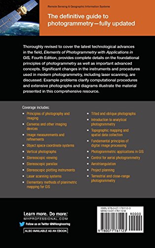 Publisher’s Note: Products purchased from Third Party sellers are not guaranteed by the publisher for quality, authenticity, or access to any online entitlements included with the product. The definitive guide to photogrammetry–fully updated Thoroughly revised to cover the latest technological advances in the field, Elements of Photogrammetry with Applications in GIS, Fourth Edition, provides complete details on the foundational principles of photogrammetry as well as important advanced concepts. Significant changes in the instruments and procedures used in modern photogrammetry, including laser scanning, are discussed. Example problems clarify computational procedures and extensive photographs and diagrams illustrate the material presented in this comprehensive resource. Coverage includes: Principles of photography and imaging Cameras and other imaging devices Image measurements and refinements Object space coordinate systems Vertical photographs Stereoscopic viewing Stereoscopic parallax Stereoscopic plotting instruments Laser scanning systems Elementary methods of planimetric mapping for GIS Titled and oblique photographs Introduction to analytical photogrammetry Topographic mapping and spatial data collection Fundamental principles of digital image processing Photogrammetric applications in GIS Control for aerial photogrammetry Aerotriangulation Project planning Terrestrial and close-range photogrammetry