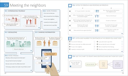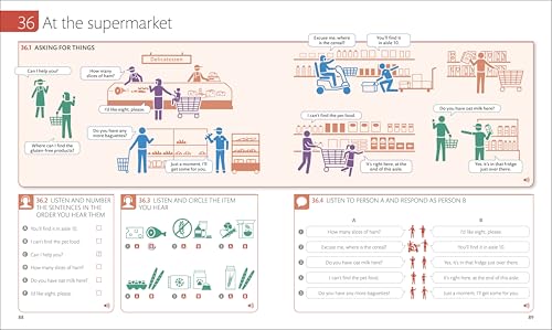 Speak English with confidence in a wide range of everyday situations, from making small talk to booking a trip abroad. With more than 1,500 of the most useful phrases and common expressions, English for Everyone: Everyday English gives you all the English conversation skills you need to get by in the real world. This engaging and accessible book covers a wide range of real-life topics and scenarios – from everyday activities, such as going to the supermarket and making appointments, to key communication skills, such as comforting someone and dealing with conflict. You’ll learn how to welcome visitors, ask for directions, give a presentation at work, find somewhere to live, order a meal out, and much, much more. Each short unit uses memorable, true-to-life dialogues to introduce a new topic, followed by practice exercises to reinforce the new words and phrases that you have learned. The dialogues are accompanied by attractive illustrations and brought to life by animated videos and audio featuring speakers of English as a first language, all available on the free English for Everyone website and app. Whether you need to learn English for work, study, travel, or relocation, English for Everyone: Everyday English is the perfect companion to help you take your English skills to the next level.