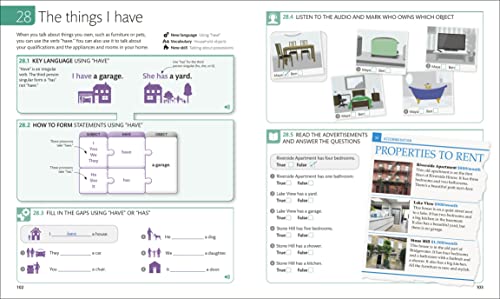 Start learning English as a second language with this visually stimulating course book for adults. Accompanying the English for Everyone Practice Book Level 1 Beginner, this illustrated course book features many vocabulary and grammar tips and tricks for adults learning English as a foreign language. This course book has eye-catching illustrations and step-by-step explanations, keeping content straightforward for easy learning. Packed with listening, speaking, reading, and writing exercises presented in bite-sized modules, you can follow the book from start to finish or dip in and out to boost your language skills. All teaching is supported by extensive audio materials, with clips recorded by native English speakers to teach the perfect pronunciation. Immerse yourself in this practical ESL learning material, which includes: Over 1,000 vocabulary and grammar exercises Lay-flat binding, making the book easier to write in Extensive accompanying audio resources that can be accessed via the website and the app The same unit-by-unit structure as the English for Everyone Practice Book Level 1 Beginner, making it the perfect learning accompaniment. This book is part of DK’s best-selling English for Everyone series, which is suitable for all levels of English language learners and provides the perfect reading companion for study, exams, work, or travel. As you work through the units, you’ll cover all the language skills, vocabulary, and grammar needed for the major global English-language exams, including TOEFL and IELTS.