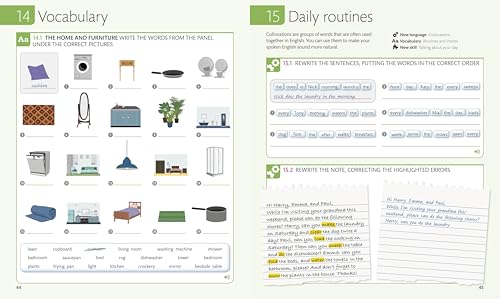 Our Practice Book (Level 3) offers great exercises and examples to introduce English at an intermediate stage including key language skills, grammar, and vocabulary. English for Everyone uses visual teaching methods to introduce practical English usage, reinforced through a variety of exercises and examples in our Practice Book (Level 3). The Level 3 Practice Book helps you to expand your English conversational topics by increasing the detail around your interests, life stories, and achievements, as well as being able to give instructions, advice, or solutions to problems. Improve your vocabulary, grammar, and punctuation to an intermediate level with comprehensive guidance. When used alongside our Course Book (Level 3), this workbook is ideal for English test preparations or ESL lesson plans. Whether you are looking for ESL teaching resources, or a structured program for adults to learn English as a second language, the English for Everyone Practice Books provide practice questions and exercises focusing on: – Grammar: Applying new language rules into different contexts with visual breakdowns of English grammar in use – Vocabulary: Cement understanding of key English vocabulary with visual cues to help understand the exercises – Reading: Examine target language topics in real-life English examples to support effective English language learning – Writing: Improve core understanding of English by producing written passages of English text – Listening: Test understanding of spoken English with extensive English-speaking audio materials integrated into every unit (All supplementary audio is available on the DK English for Everyone website and IOS/Android App). – Speaking: ESL learners can practice and compare spoken English with our free online audio resources The English for Everyone Level 3 resources cover the skills and topics required for all major global English-language exams and reference frameworks including: – CEFR: B1 – lower B2 – TOEFL (test paper): 340-520 – TOEFL (computer-based test): 60-200 – TOEFL (online test): 20-70 – IELTS: 3.5-5.5 – TOEIC: 500-850 English for Everyone is a series of guides and practice books that supports English learning for adults from a beginner level, to intermediate, and advanced practical English. Offering an easy-to-follow format that offers guidance for both teaching English as a second or foreign language, and a self-study approach with resources available to improve English speaking, reading, and writing.