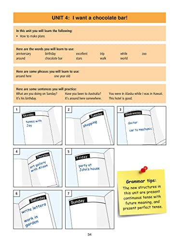 This book continues to build English proficiency for beginners using a pictorial method to teach vocabulary and grammar.