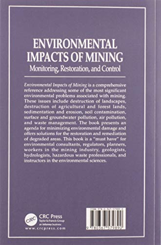 Environmental Impacts of Mining is a comprehensive reference addressing some of the most significant environmental problems associated with mining. These issues include destruction of landscapes, destruction of agricultural and forest lands, sedimentation and erosion, soil contamination, surface and groundwater pollution, air pollution, and waste management. The book presents an agenda for minimizing environmental damage and offers solutions for the restoration and remediation of degraded areas. This book is a “must have” for environmental consultants, regulators, planners, workers in the mining industry, geologists, hydrologists, hazardous waste professionals, and instructors in the environmental sciences.