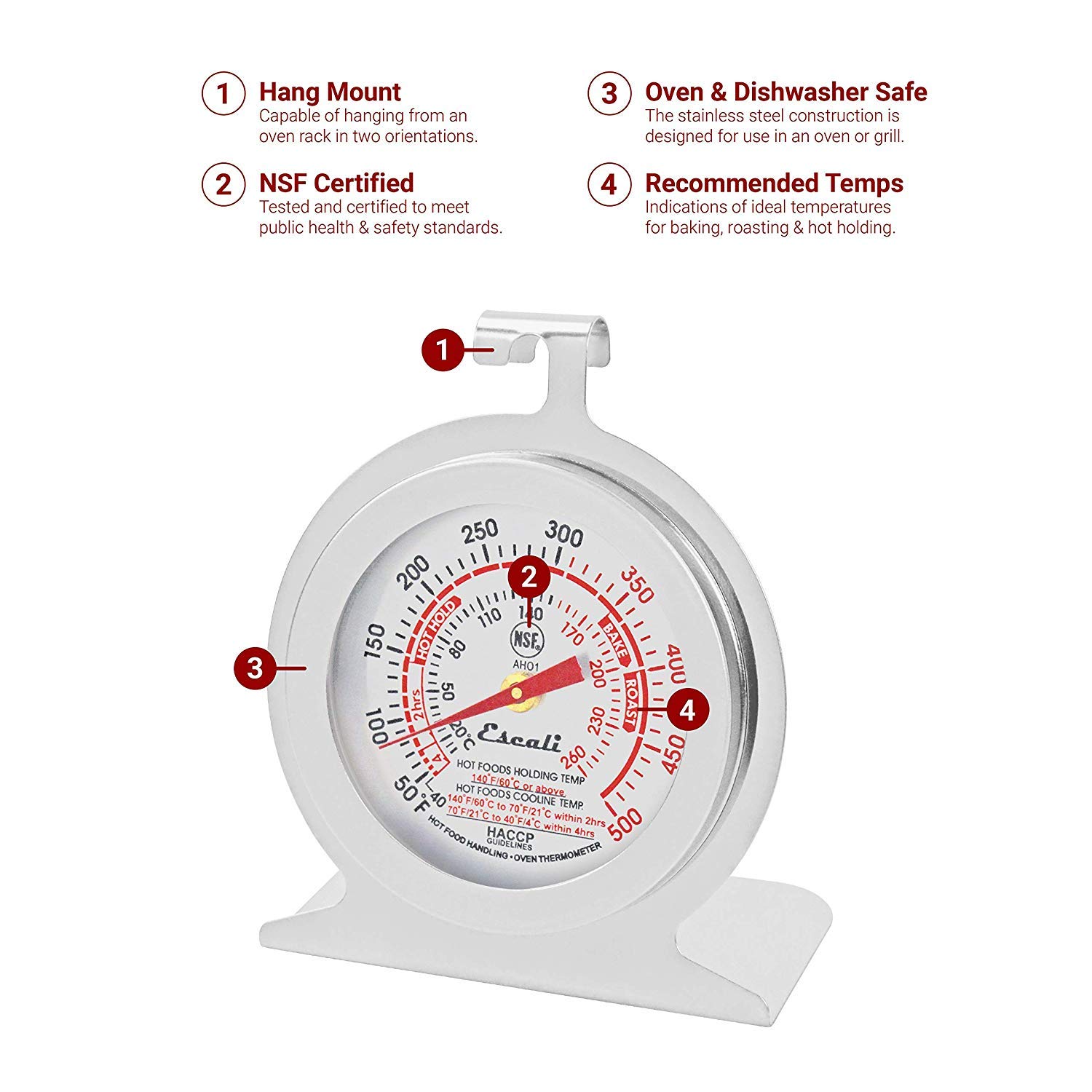 - Oven and Dishwasher Safe: The durable stainless steel construction allows the thermometer to be left in an oven or grill to measure internal air temperatures and is also constructed to be dishwasher safe