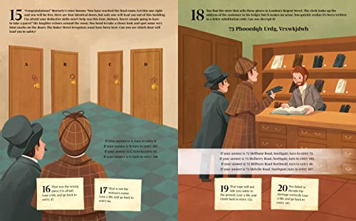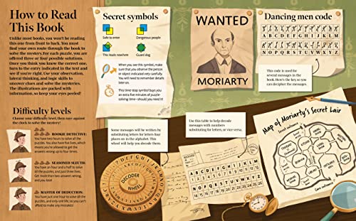Bring the excitement of an escape room into your own home, with this ingenious full-color puzzle book! You’ll be taking on the role of Sir Arthur Conan Doyle’s Sherlock Holmes, the world’s most brilliant detective. Your mission: to retrieve the famous Musgrave Diamond, and thwart criminal mastermind Moriarty’s diabolical scheme! * This book’s branching narrative puts YOU in the driving seat. Once you have found the solution to a puzzle, turn to the next entry as clearly indicated in the text. * Use your observation, lateral thinking, and logic skills to uncover clues and solve mysteries. The beautifully, detailed illustrations are packed with information, so keep your eyes peeled! * Are you a rookie detective, a seasoned sleuth, or a true master of deduction? Choose your difficulty level, then race against the clock to solve the mystery! Inspired by the popular escape room trend, this delightfully illustrated, interactive book is great fun for children aged 8+. ABOUT THE SERIES: The vibrantly illustrated Escape Room Adventures series puts young puzzlers in control of their very own adventure. In these narrative puzzle stories, readers must correctly solve the riddles and conundrums to proceed to the next ‘room’ in a thrilling race against time!