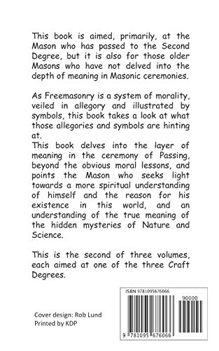This book is aimed, primarily, at the Mason who has passed to the Second Degree, but it is also for those older Masons who have not delved into the depth of meaning in Masonic ceremonies.As Freemasonry is a system of morality, veiled in allegory and illustrated by symbols, this book takes a look at what those allegories and symbols are hinting at.This book delves into the layer of meaning in the ceremony of Passing, beyond the obvious moral lessons, and points the Mason who seeks light towards a more spiritual understanding of himself and the reason for his existence in this world, and an understanding of the true meaning of the hidden mysteries of Nature and Science.This is the second of three volumes, each aimed at one of the three Craft Degrees.
